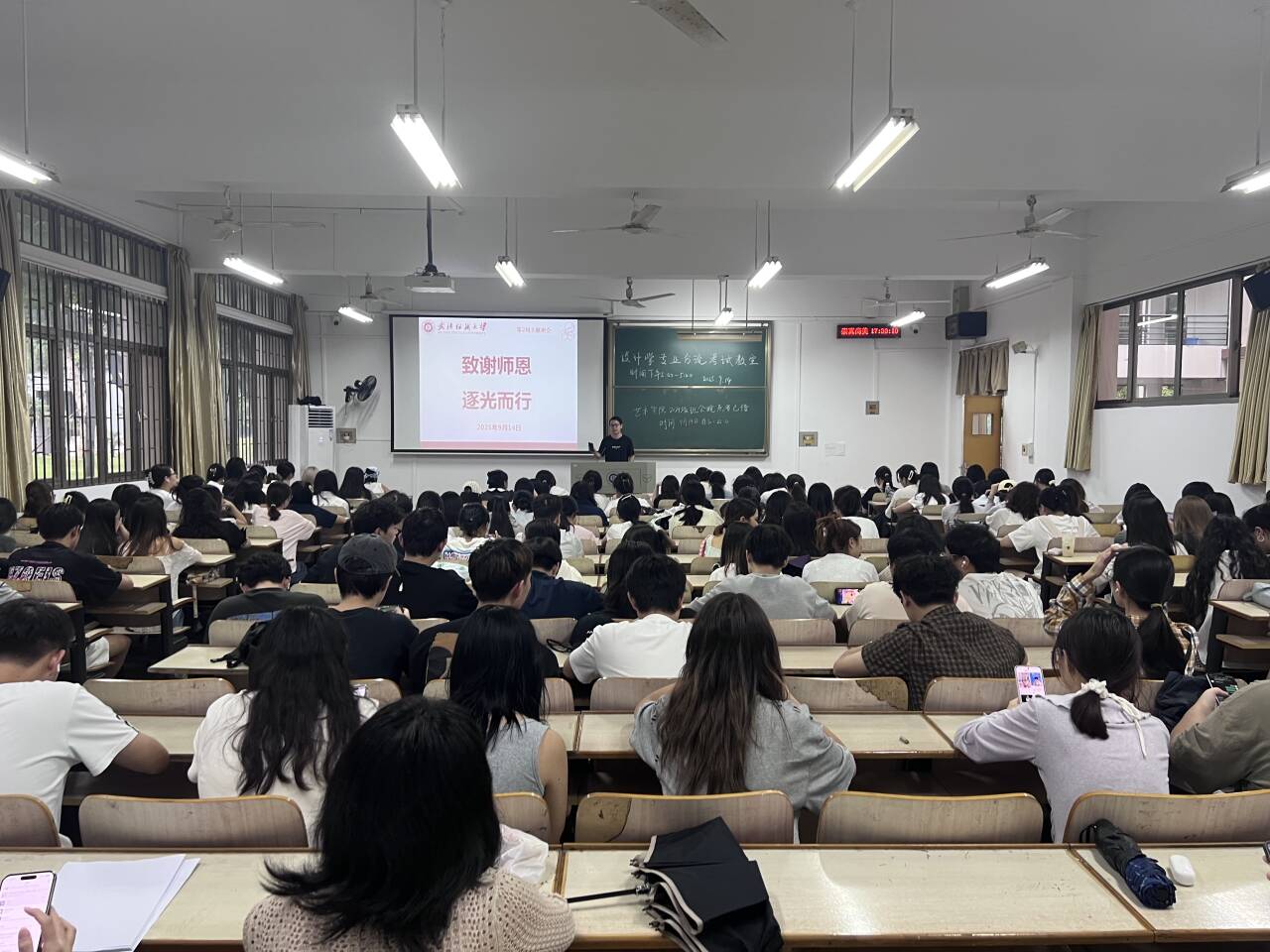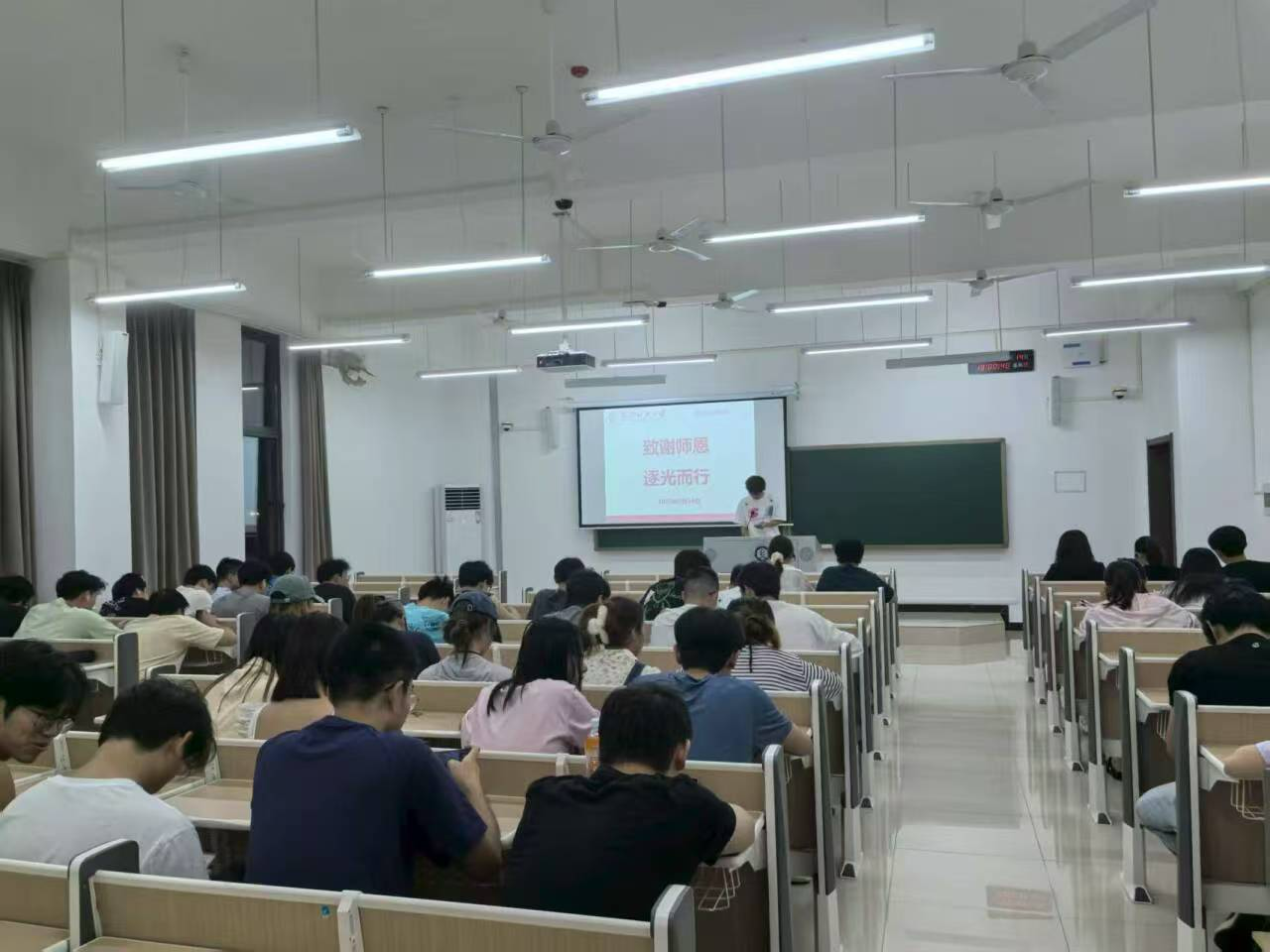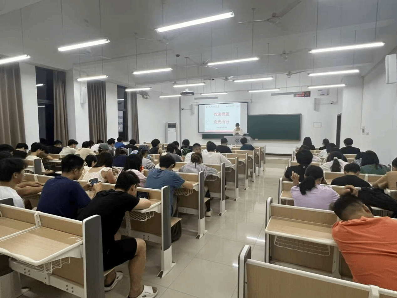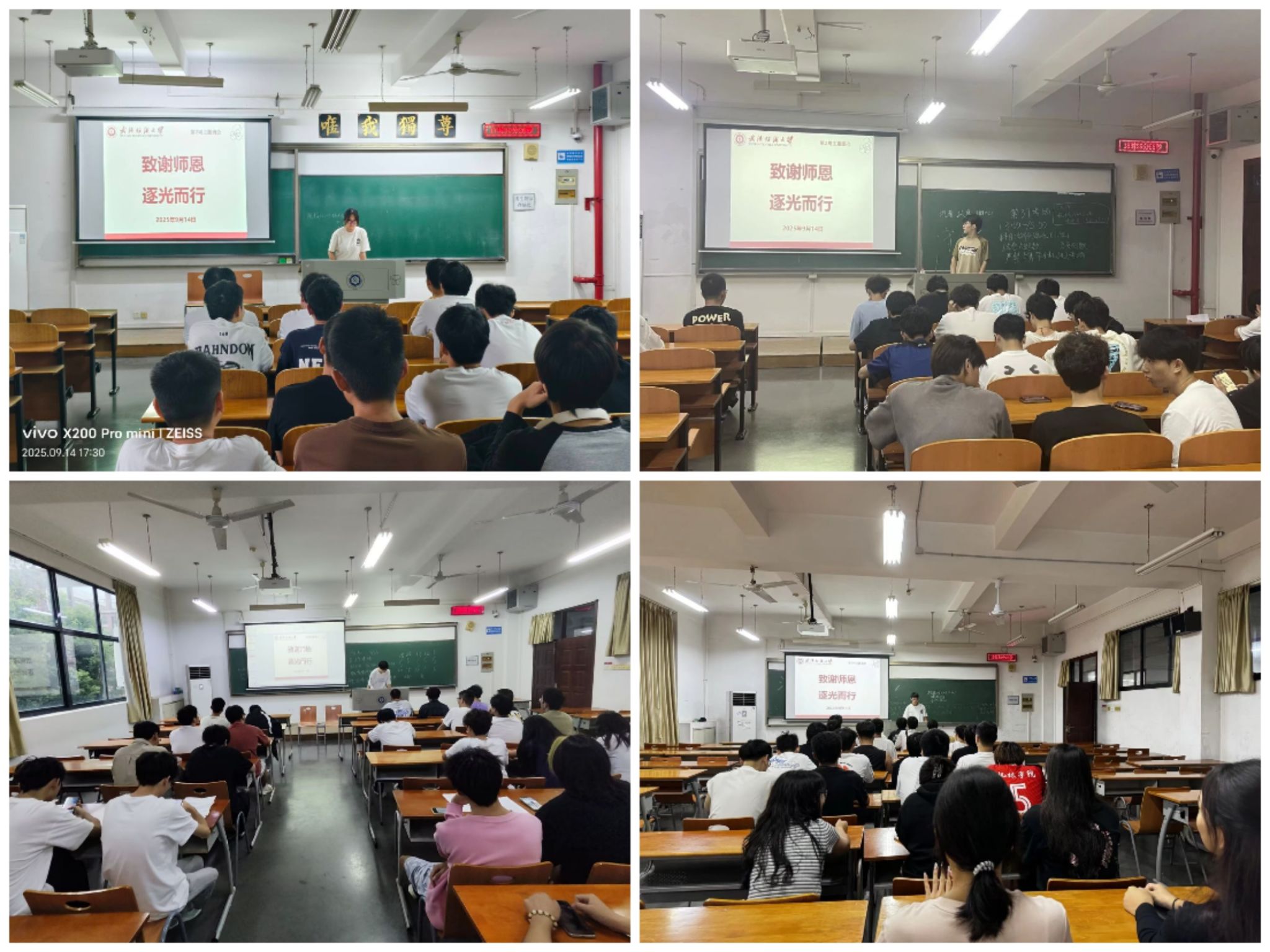 为进一步弘扬尊师重教的优良传统,引导学生常怀感恩之心、勇担时代使命,9月14日,学院于崇志楼各晚点名教室顺利开展“致谢师恩,逐光而行”主题教育班会。本次班会由各年级班主任组织,学院全体本科生共同参与,旨在通过丰富多样的活动形式,让学生在交流与感悟中深化对师恩的理解,将感恩之情转化为逐梦前行的动力,为成长之路注入温暖而坚定的力量。
