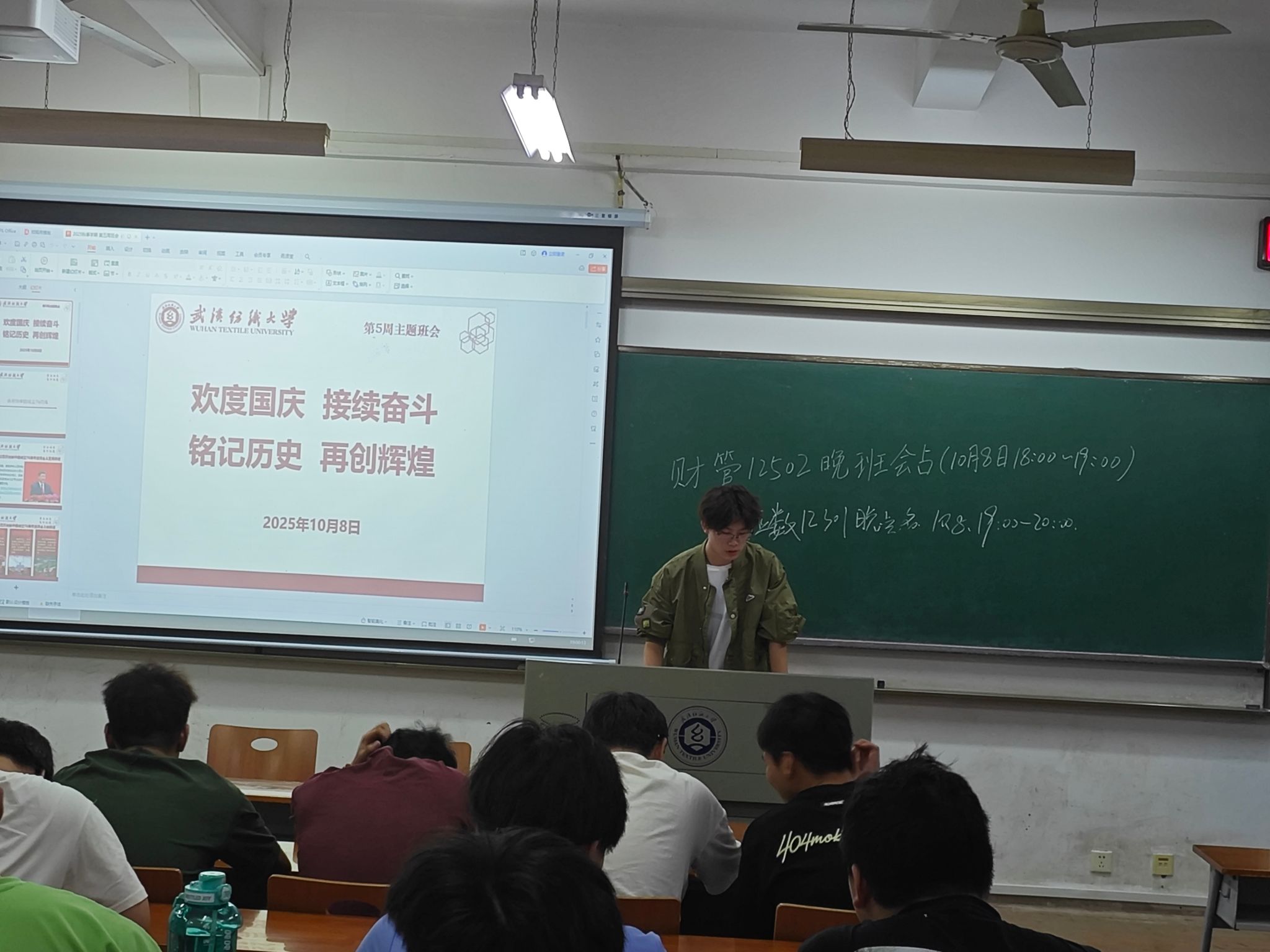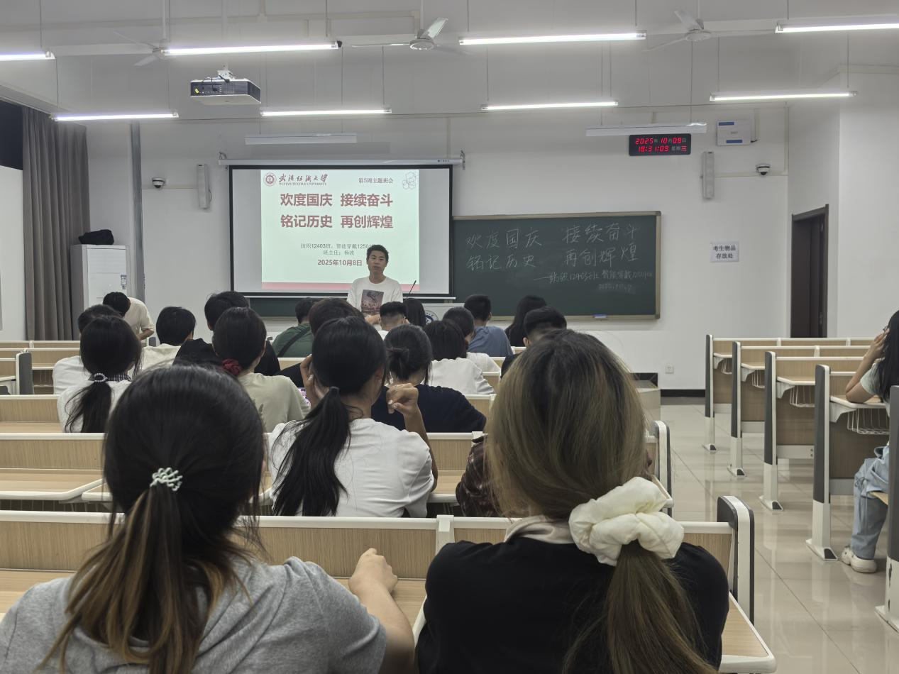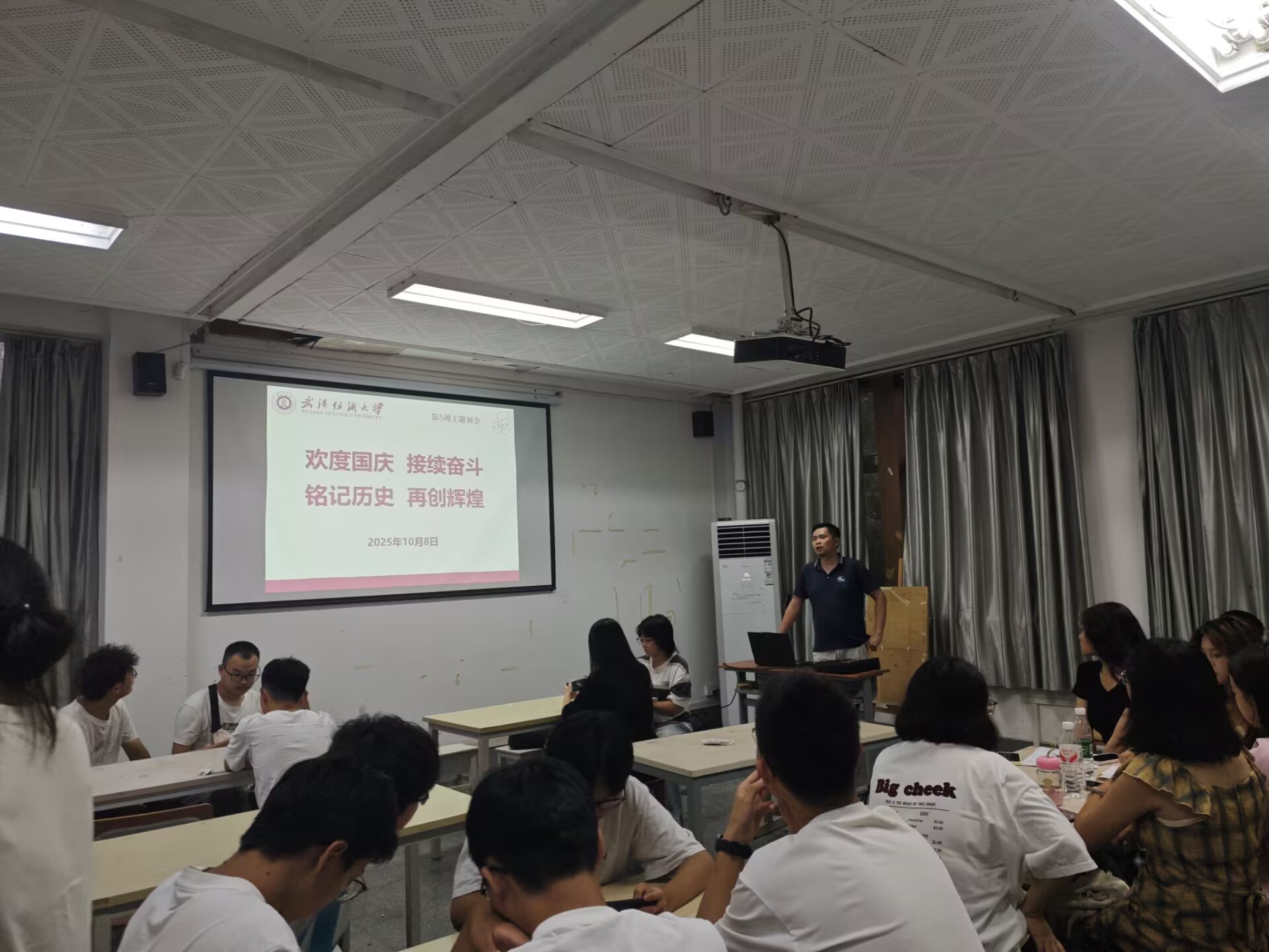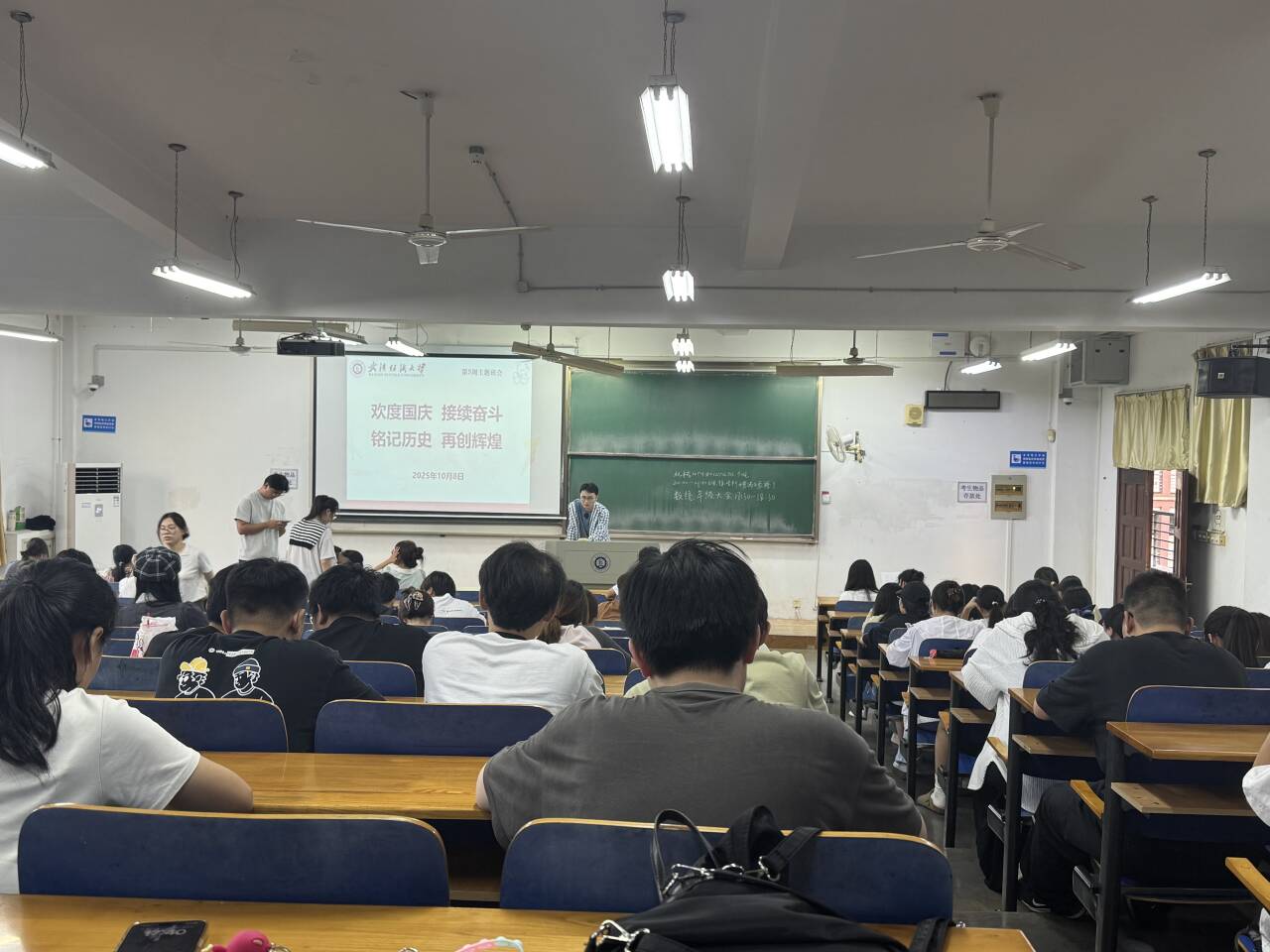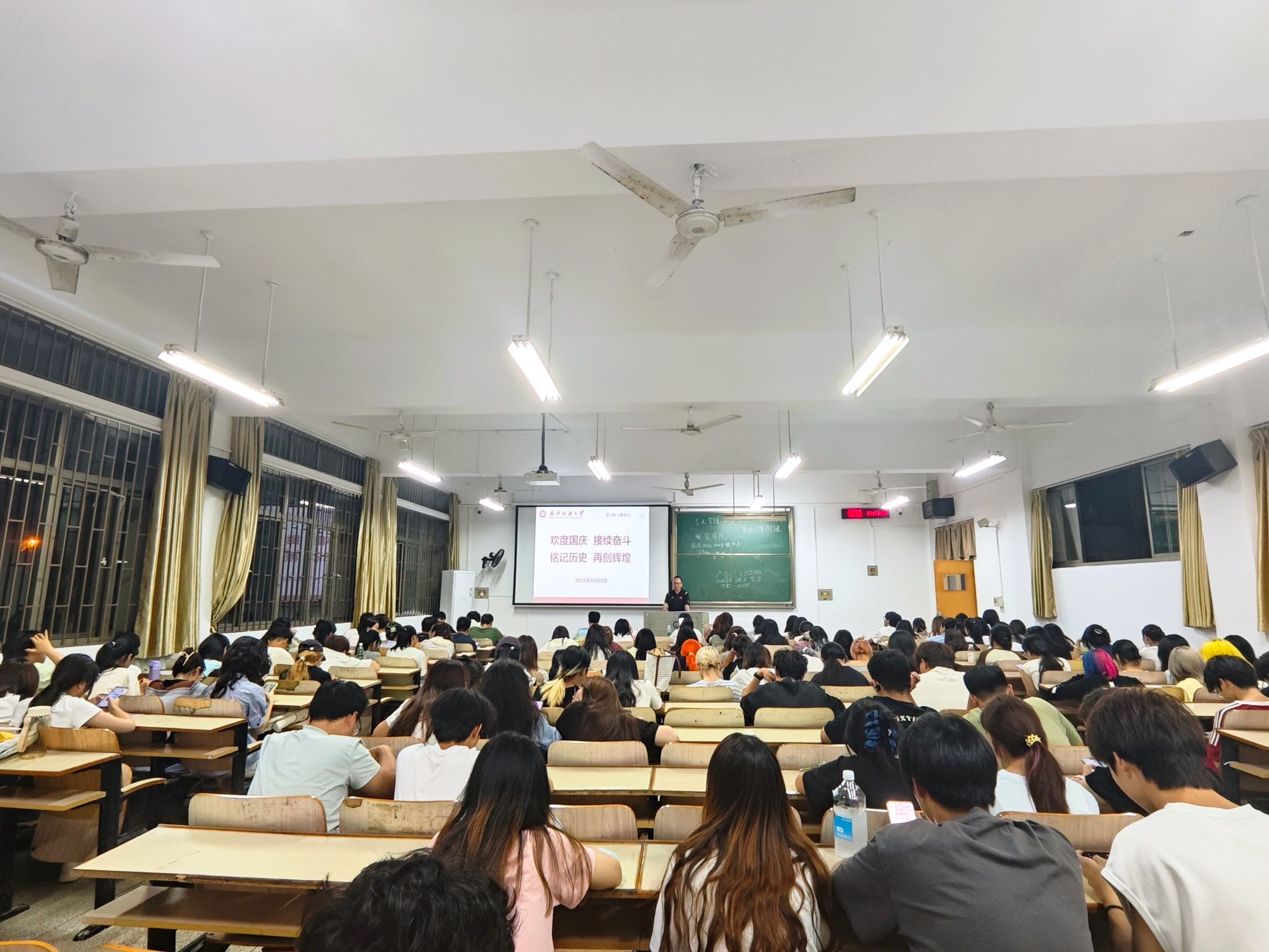 本次班会以欢度国庆、铭记历史为契机,激发接续奋斗的精神,同时关注心理健康,助力同学们共享生命阳光、再创辉煌。10月8日晚,数统学院于崇志楼展开主题班会。数统学院全体学生参加,班会由各班班长主持。