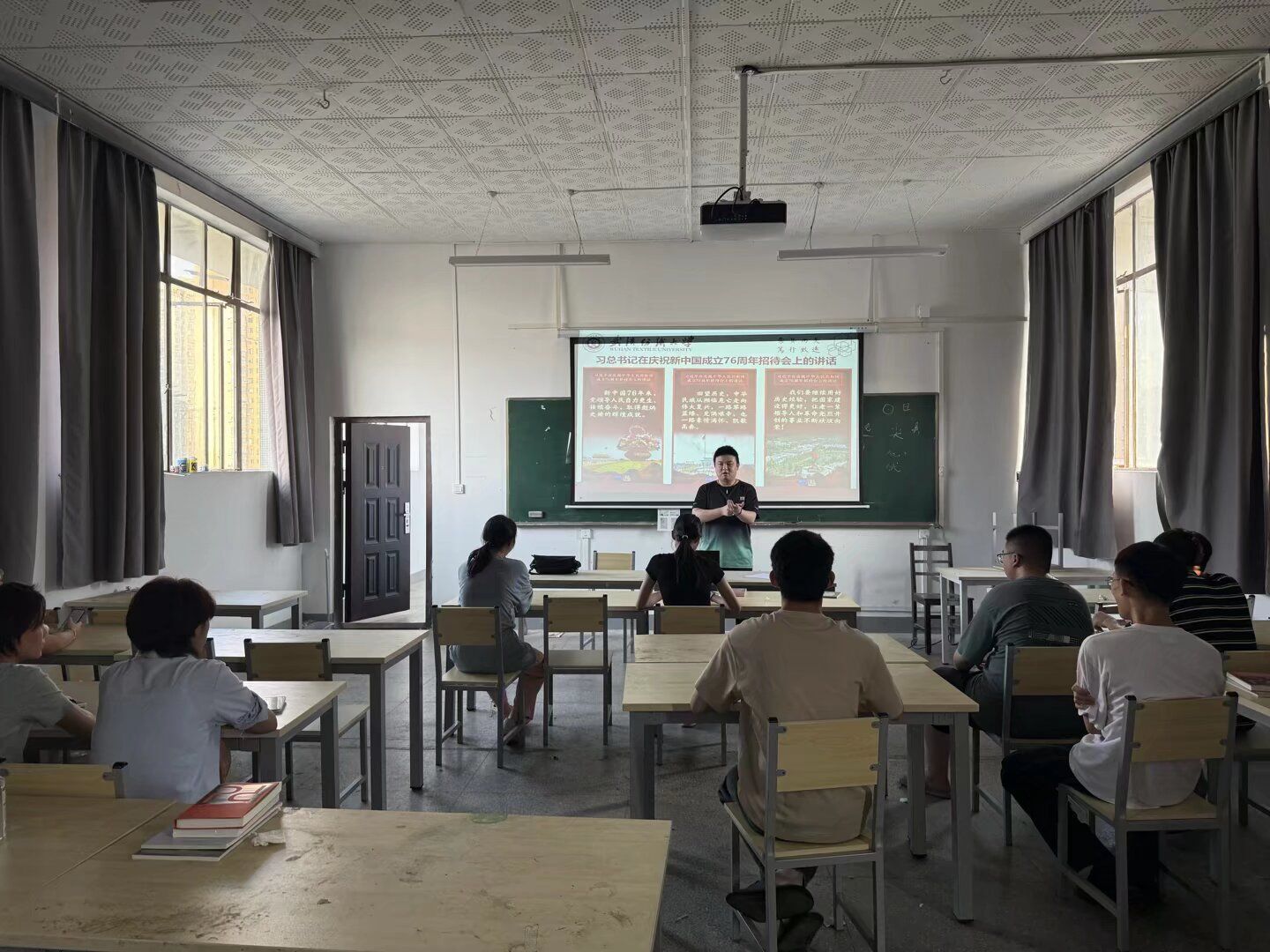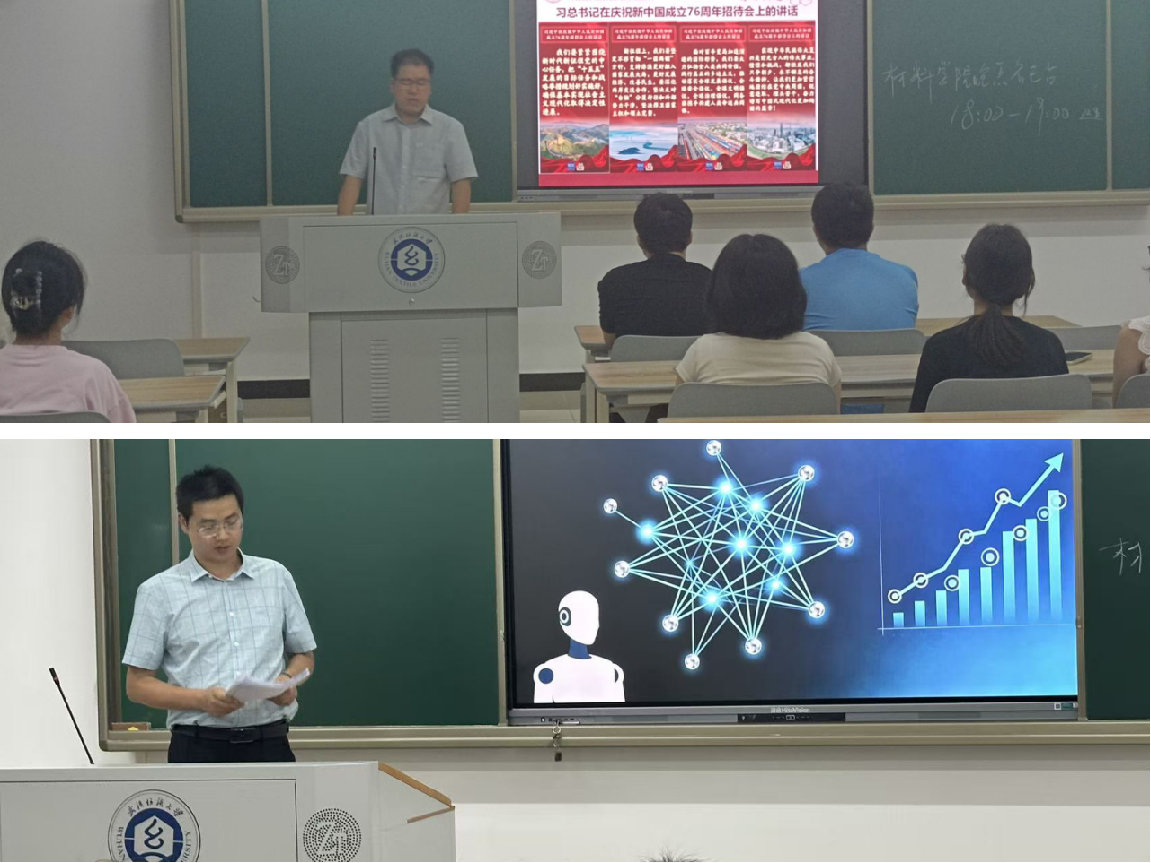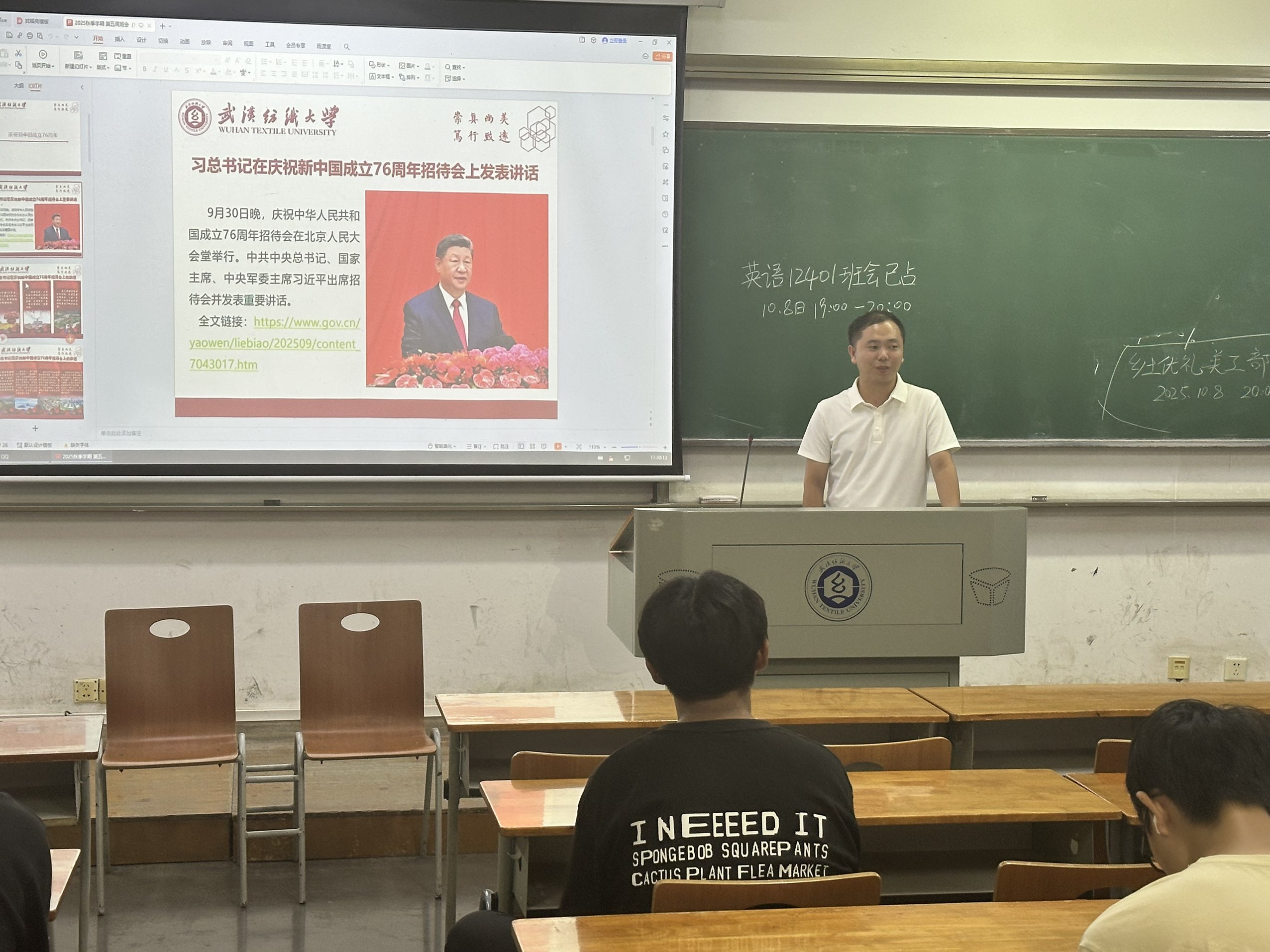 在核心教育环节,辅导员和班主任老师带领学生深入学习习近平总书记在庆祝新中国成立76周年招待会上发表讲话精神,鼓励同学们将个人理想融入国家发展大局,以实际行动践行“强国有我”的青春誓言。