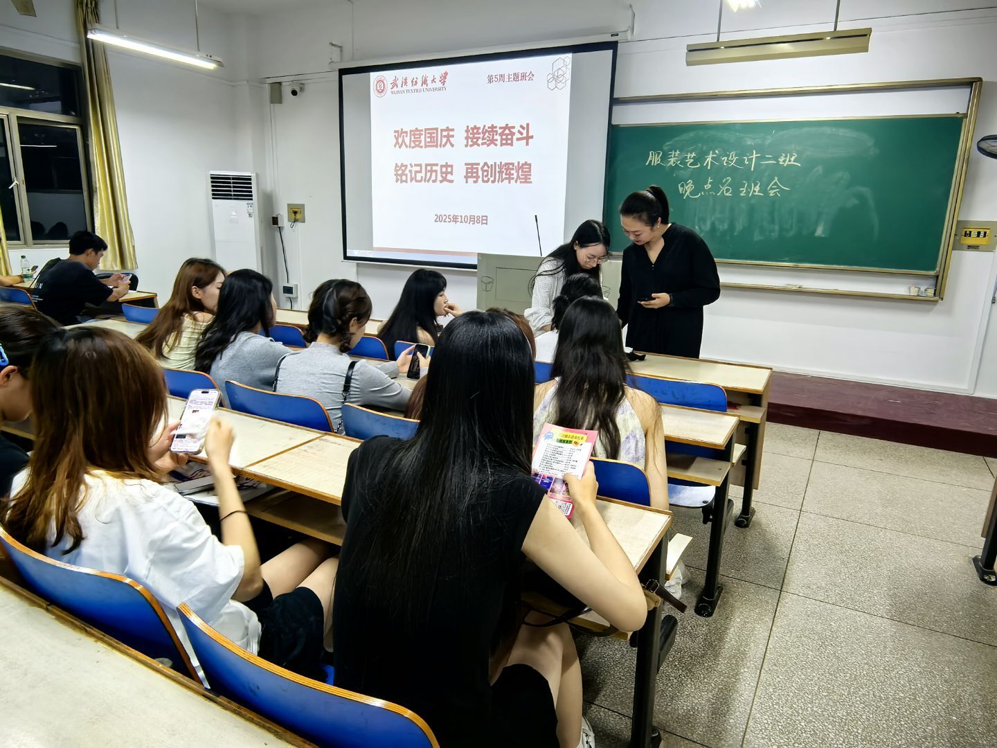 为提升学生家国情怀,强化思想引领和人文关怀,10月8日晚,艺术与设计学院各班开展“欢度国庆 接续奋斗 铭记历史 再创辉煌”主题教育班会。班会由各年级辅导员、班主任主持,全体学生共同参与。