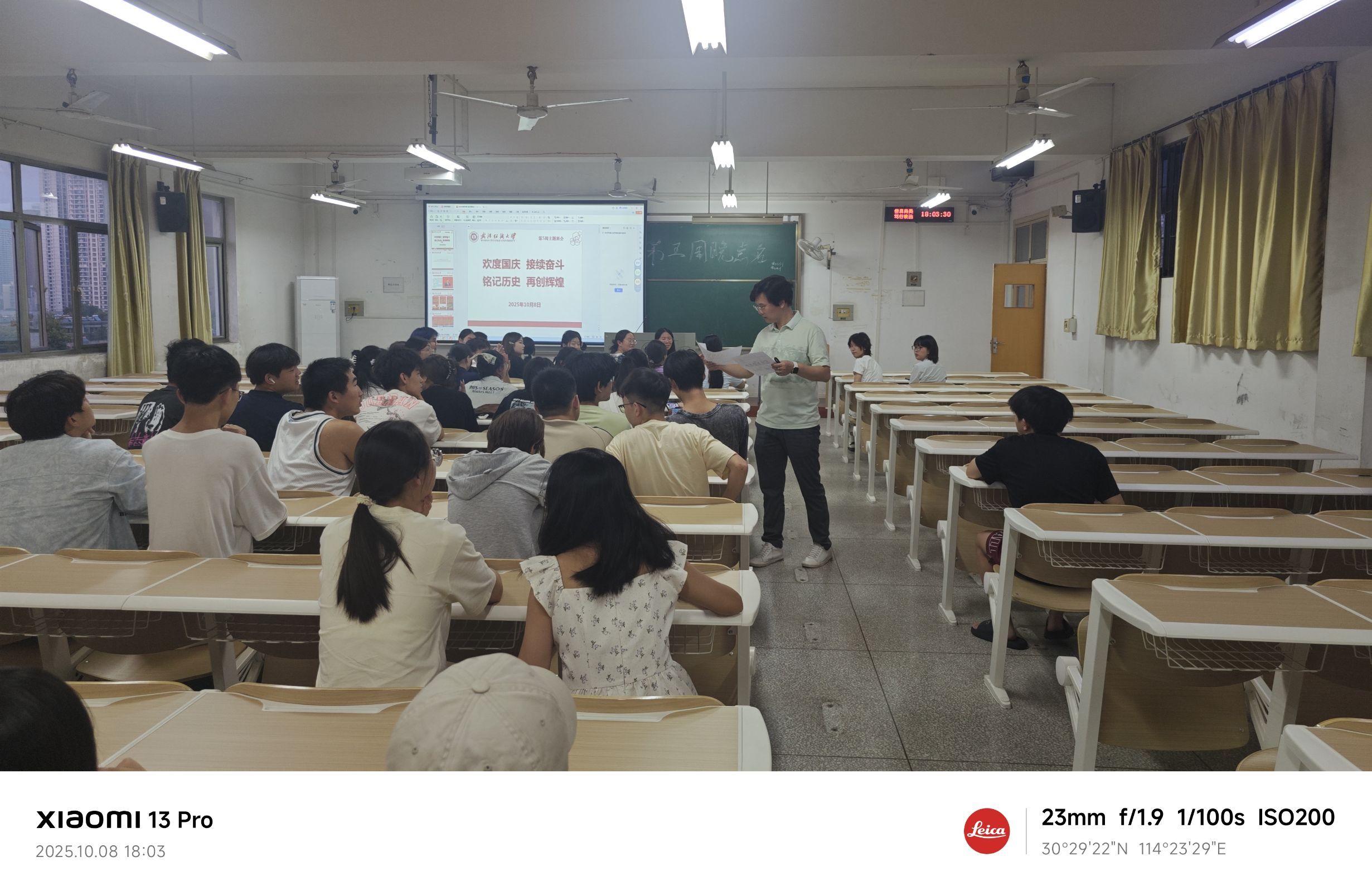 10月8日,机械工程与自动化学院组织各班级开展“欢度国庆 接续奋斗 铭记历史 再创辉煌”主题班会,将爱国主义教育与心理健康教育深度融合,引导学生坚定理想信念,关注身心健康。