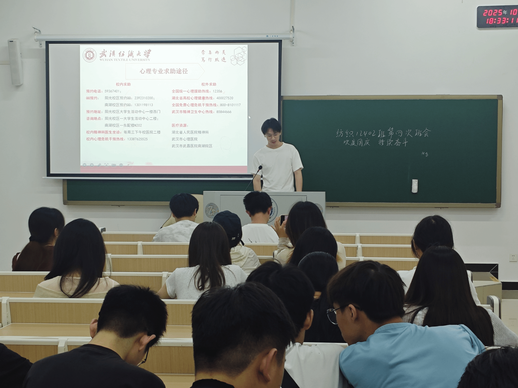 师生共同回顾了习近平总书记在庆祝新中国成立76周年招待会上的重要讲话精神,激励同学们铭记历史、接续奋斗,将个人成长融入国家发展大局。随后,班会聚焦世界精神卫生日,系统讲解了2025年世界精神卫生日常识、常见心理问题的识别与应对方法,介绍了校内外心理援助资源,包括预约电话、QQ咨询、校内坐诊及多项心理危机干预热线,鼓励同学们在需要时积极求助。老师特别强调了宿舍安全,并提醒学生调整作息规律,快速从假期状态切换到学习模式,以饱满的精神状态投入新阶段的学习生活。