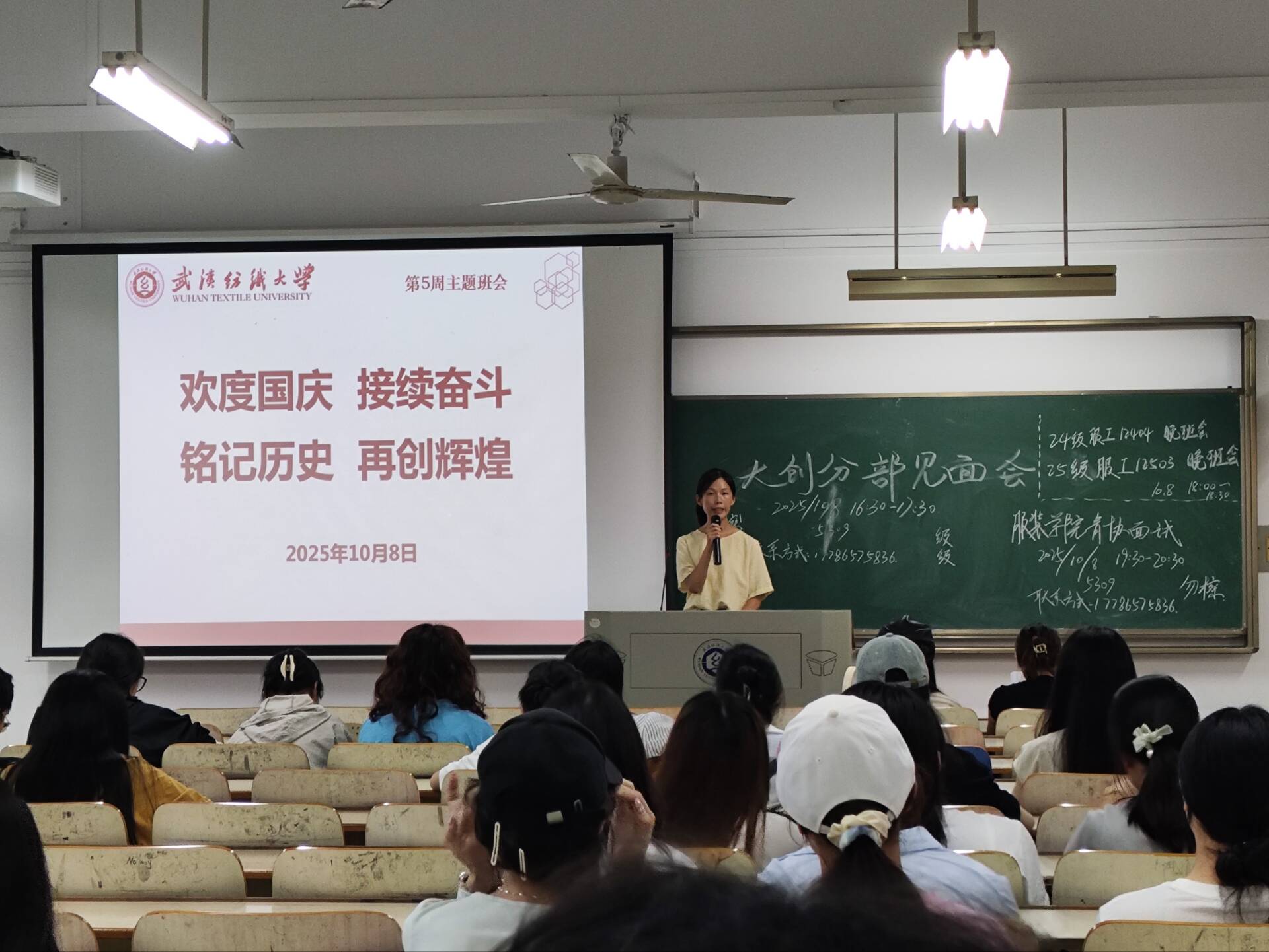 为进一步弘扬爱国主义精神,引导学生坚定理想信念、明确前行方向,10月8日,纺织学院召开“欢度国庆,接续奋斗,铭记历史,再创辉煌”主题班会,各年级辅导员,班主任主持班会,全体学生共同参与。