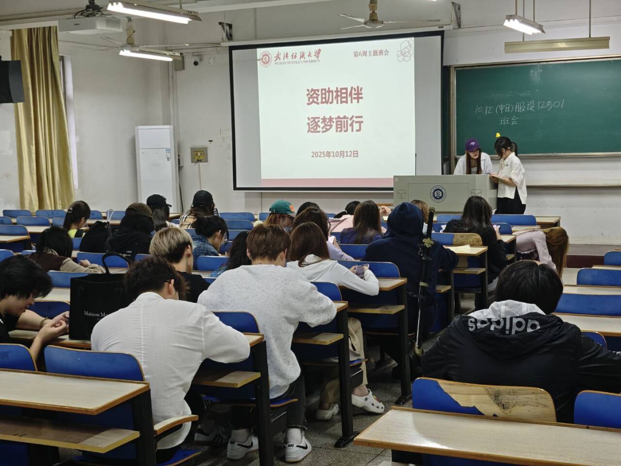 2025年10月12日晚,服装学院各班级同步召开“资助相伴 逐梦前行”主题班会,围绕学生管理、资助政策宣讲、心理关怀及校园卫生等核心工作展开,切实落实学院育人与管理要求。