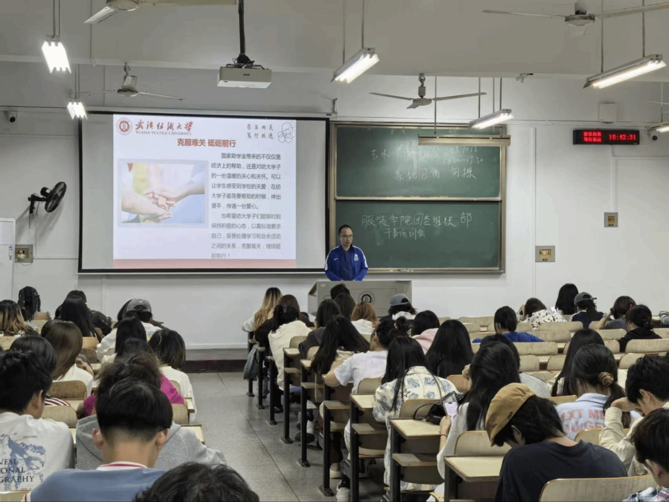 在资助政策宣讲环节,各年级辅导员紧扣“不让一个学生因家庭经济困难而失学”的宗旨,系统介绍了武汉纺织大学“奖、贷、助、补、减”五位一体的资助体系。结合材料学院学生专业学习特点,重点讲解国家奖学金、国家励志奖学金、国家助学金等核心资助项目的申请条件与标准。