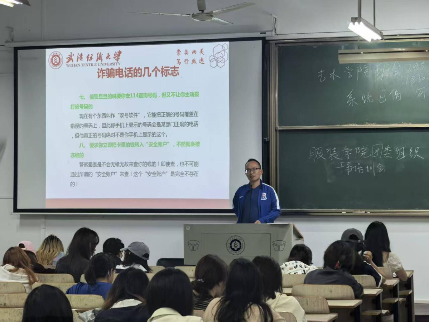 班会上,班主任结合典型案例开展防电信诈骗宣传教育,通过拆解诈骗话术、分析情景场景,有效提升新生辨别诈骗行为的能力与主动防范意识。