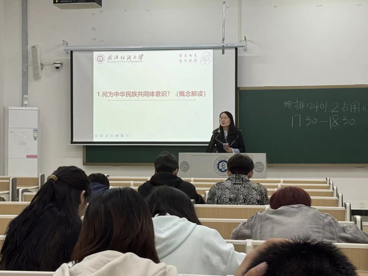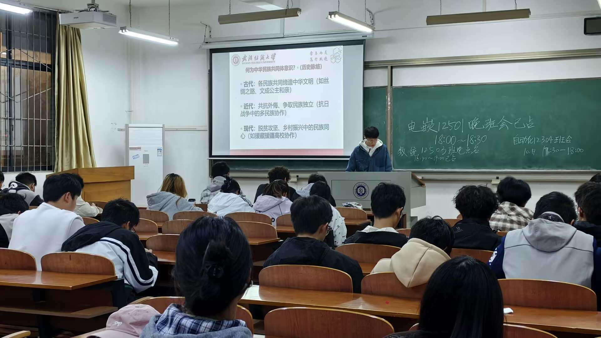 老师们以“历史+现实”双线展开讲解,从古代丝绸之路各民族商贸互通、文成公主和亲促进文化交融,到近代抗日战争中多民族协作,脱贫攻坚、乡村振兴中的民族同心,用鲜活故事解读中华民族共同体意识的核心内涵。班主任们结合管理学科特色,引导学生思考如何以专业视角理解国家统一与民族发展的关系,鼓励大家主动参与各项实践活动,将个人专业学习与民族复兴使命相结合。