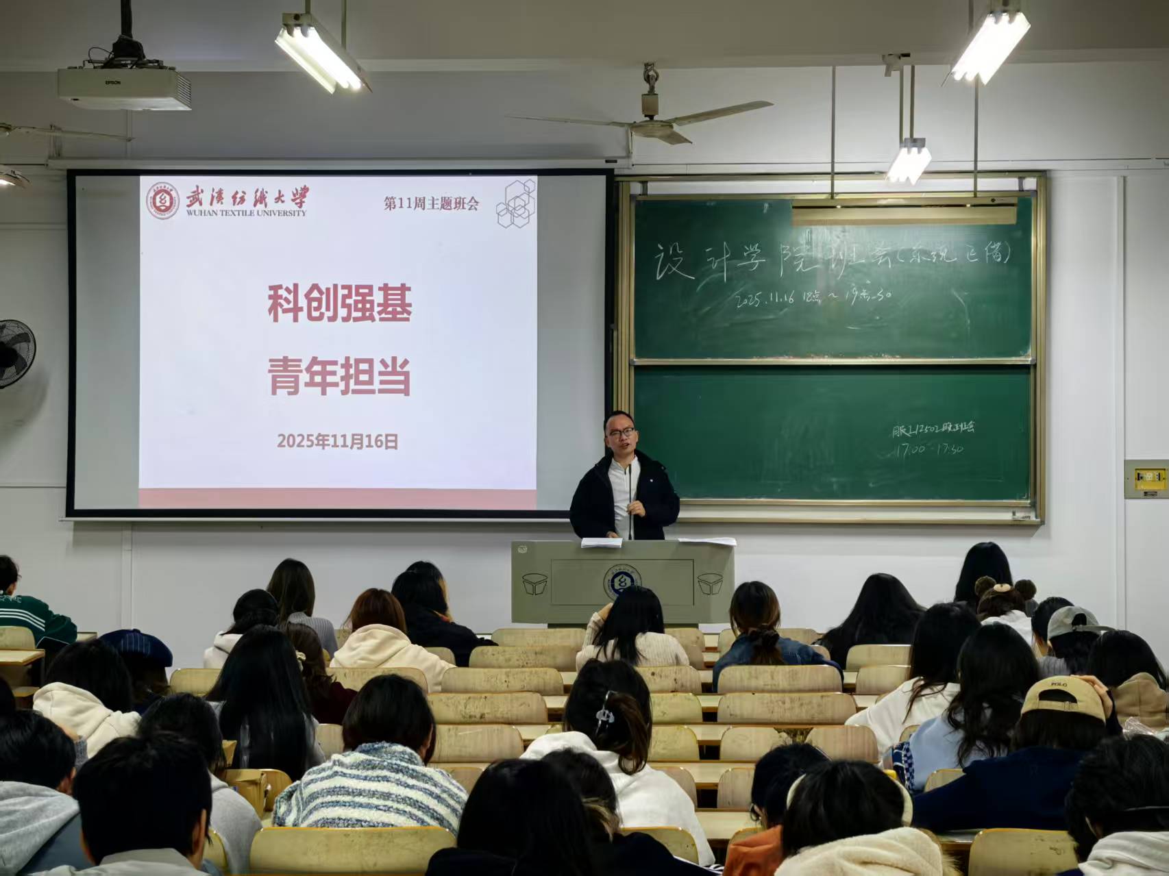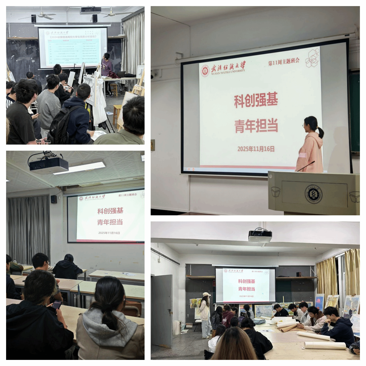 11月16日,纺织学院组织开展“科创强基,青年担当”主题班会,深入学习习近平总书记关于科技创新的重要论述,聚焦国家战略需求,激励青年学子立足专业、投身科创,以实际行动践行新时代青年的责任与担当。各班辅导员、班主任主持班会,全体本科生共同参与。