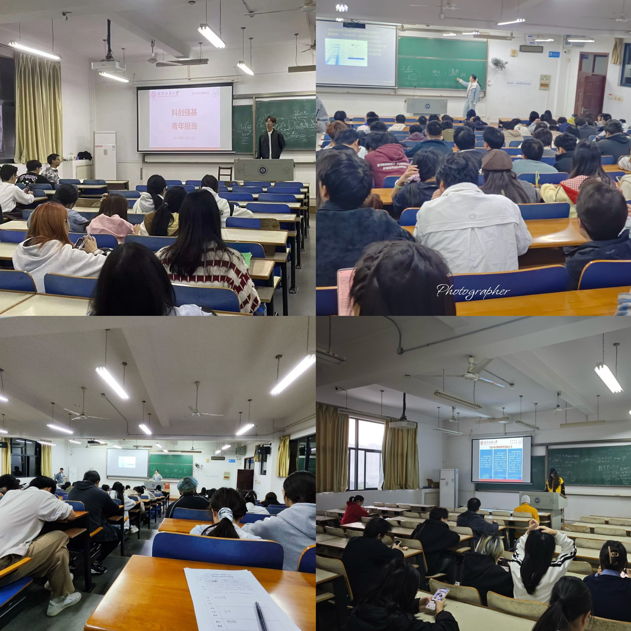 为深入学习贯彻习近平总书记关于青年科技人才工作的重要指示精神,激发学生的创新精神和实践能力,2025年11月16日,学院各年级研究生和本科生在崇礼楼集中开展了以“科创强基 青年担当”为主题的班会。
