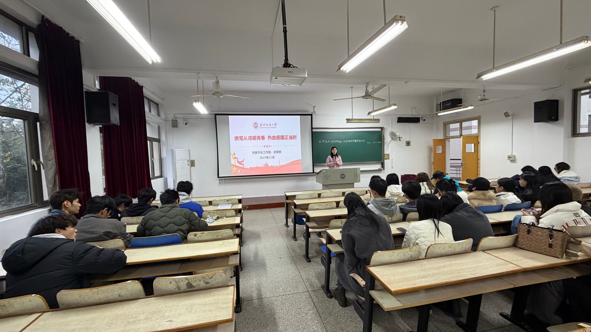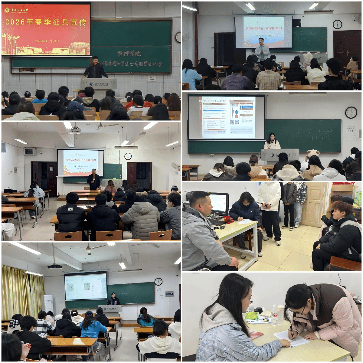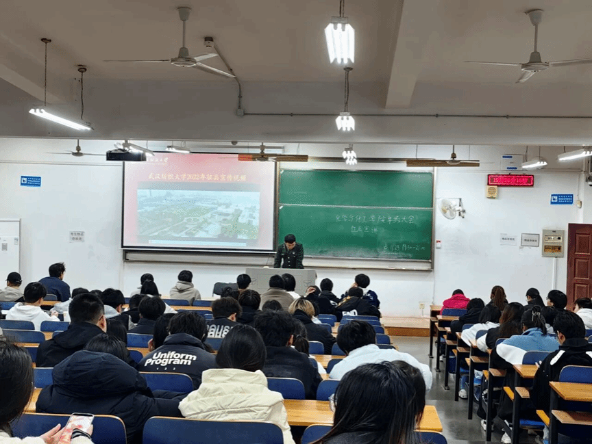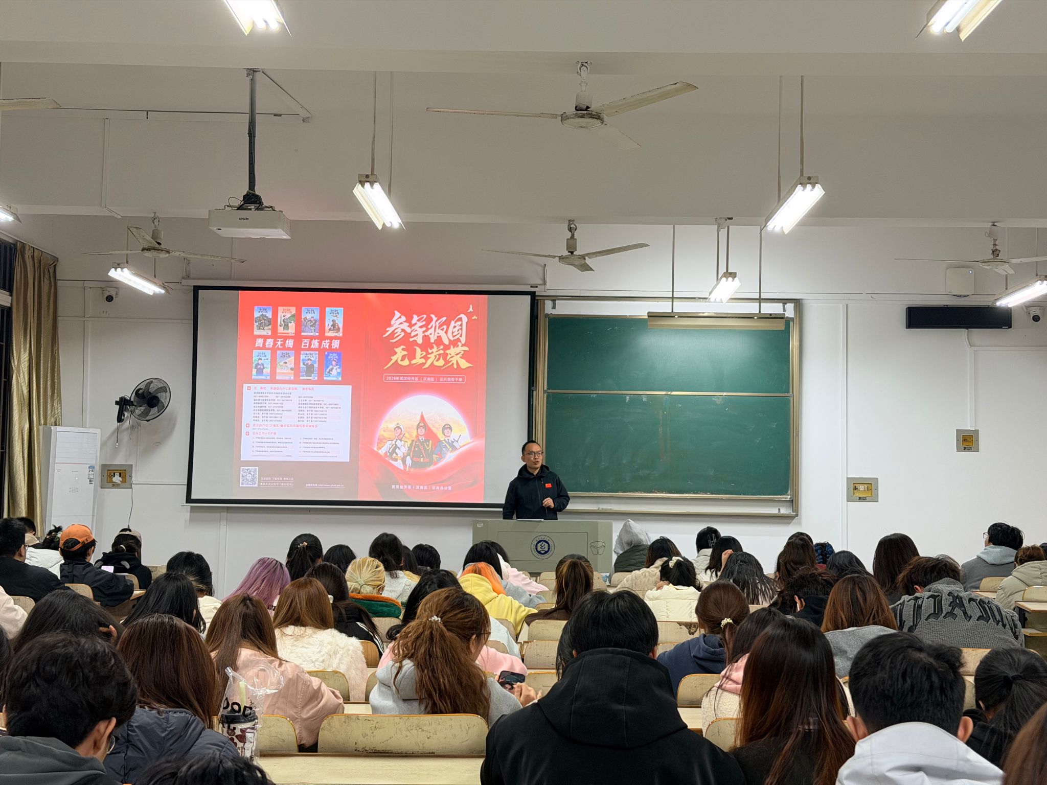 11月23日,学院在崇志楼各晚点名教室开展“携笔从戎砺青春 热血报国正当时”主题班会,围绕2026年征兵工作相关政策、流程及要求,面向各年级学生开展专项宣传动员,引导青年学子响应国家号召,以青春之力投身国防事业。