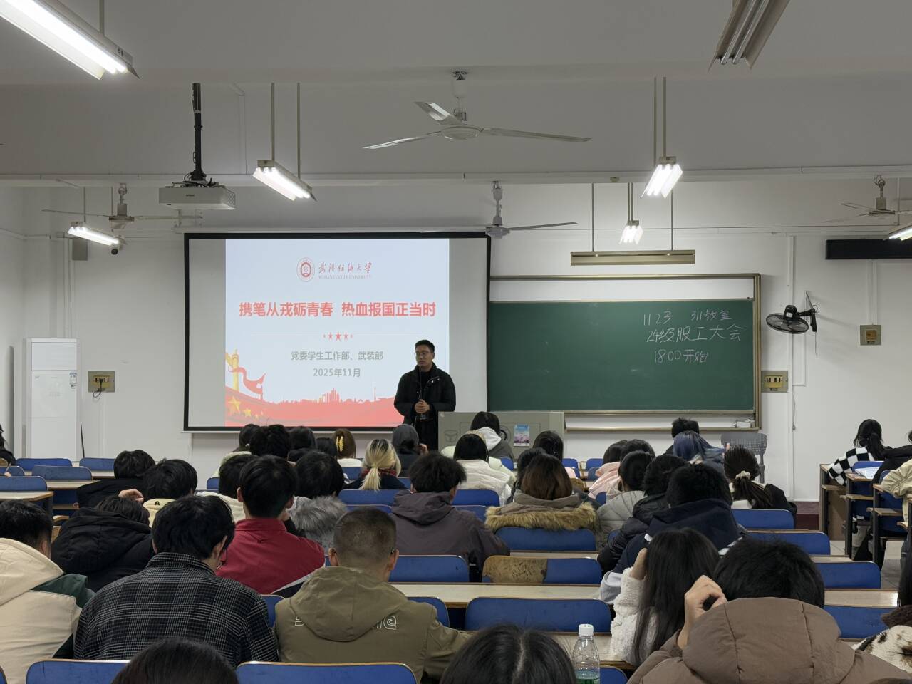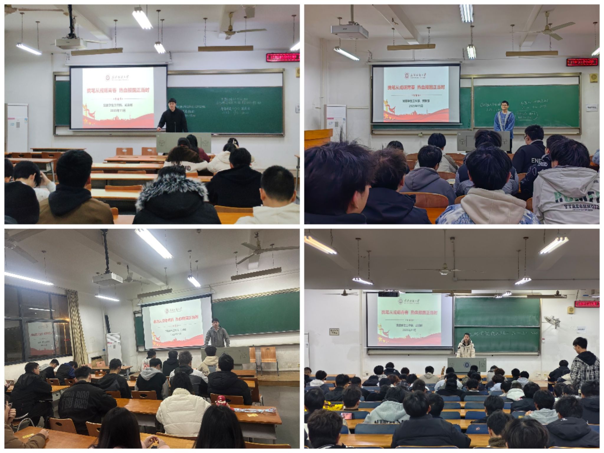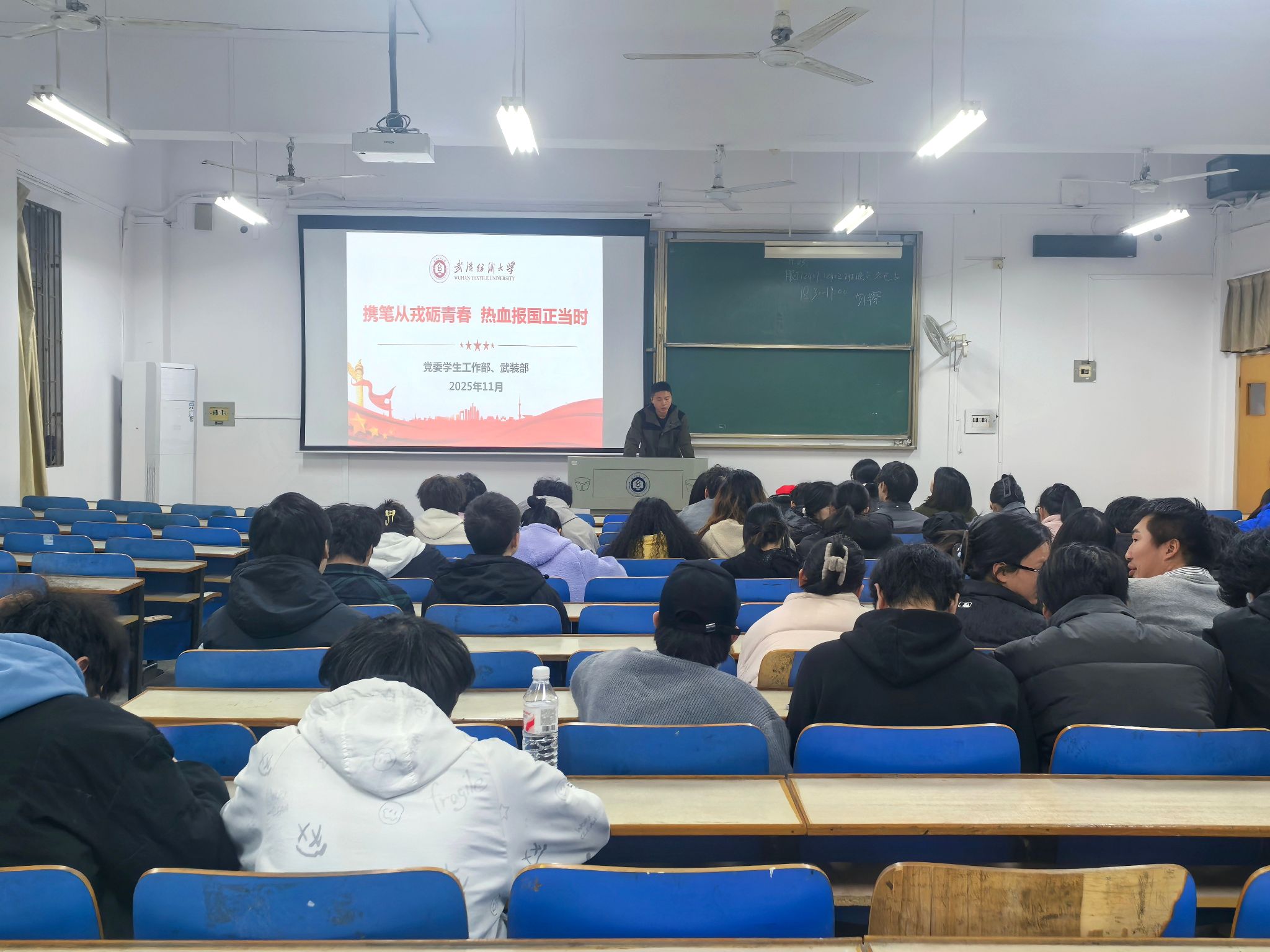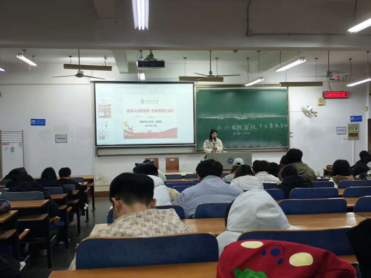 11月23日,学院在崇志楼各晚点名教室开展“携笔从戎砺青春 热血报国正当时”主题班会,围绕2026年征兵工作相关政策、流程及要求,面向各年级学生开展专项宣传动员,引导青年学子响应国家号召,以青春之力投身国防事业。