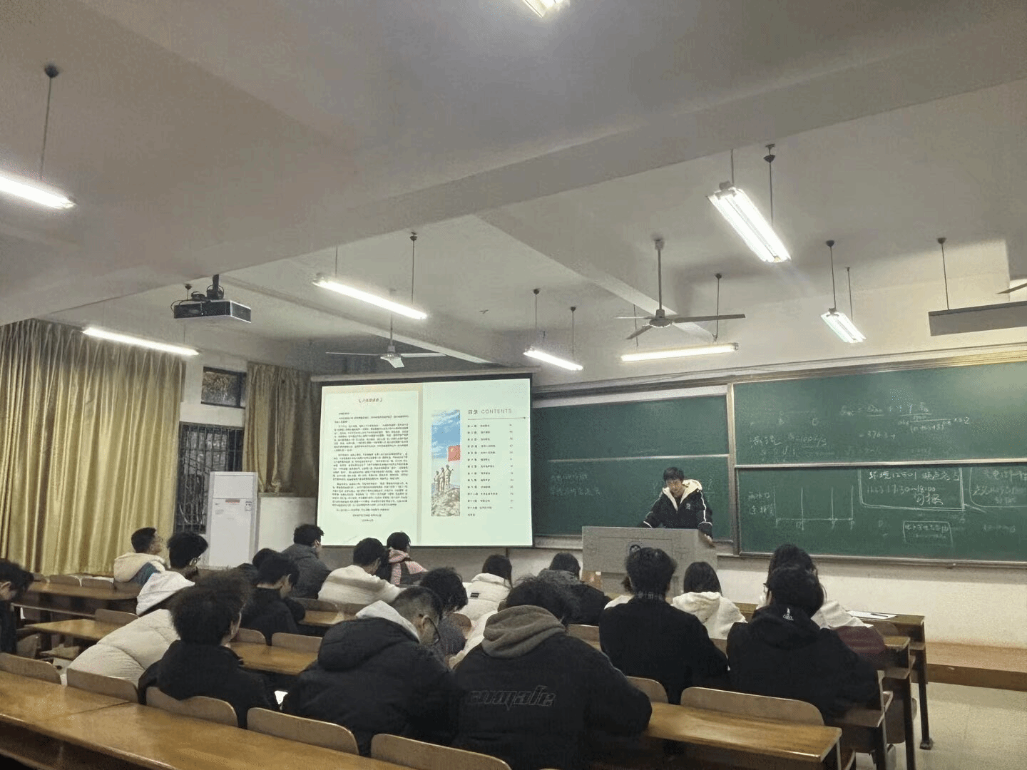 为让同学们对国防建设、参军入伍有更全面的认识和更深刻的感悟,数学与统计学院于2025年11月23日在崇志楼开展了以“携笔从戎立青春,热血报国正当时”为主题的班会,班会由各班班长主持,全体同学参加。