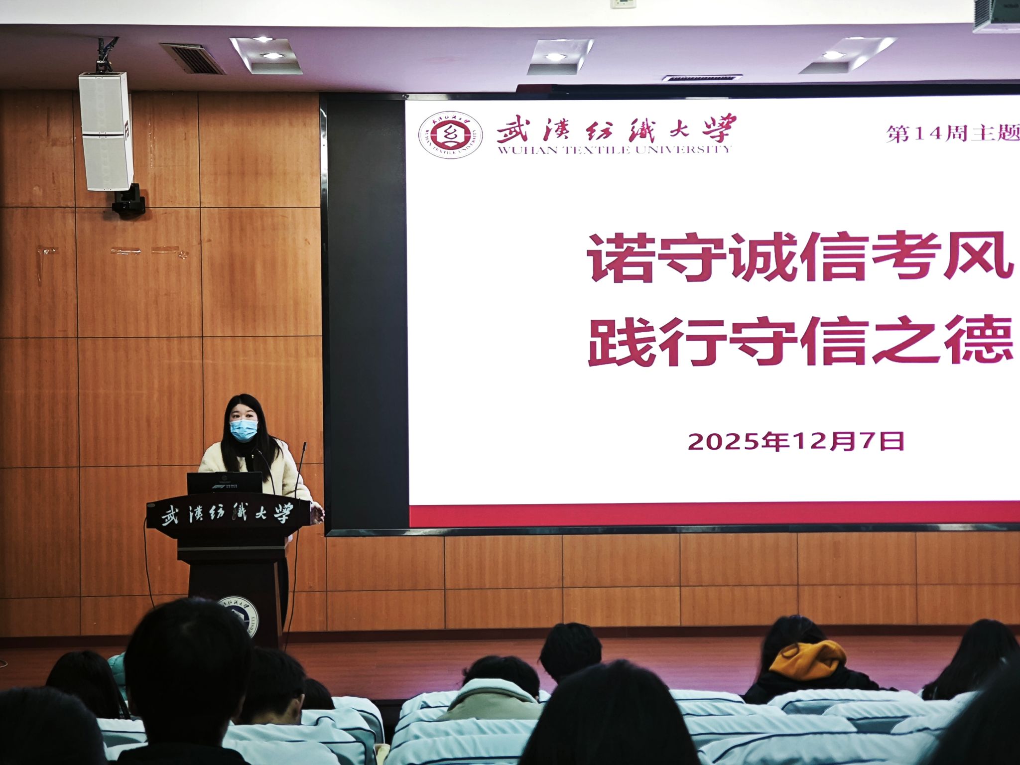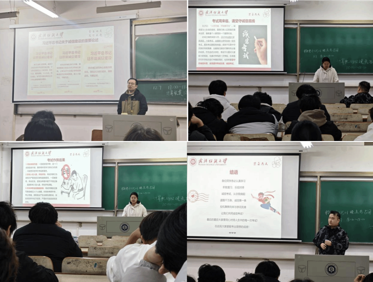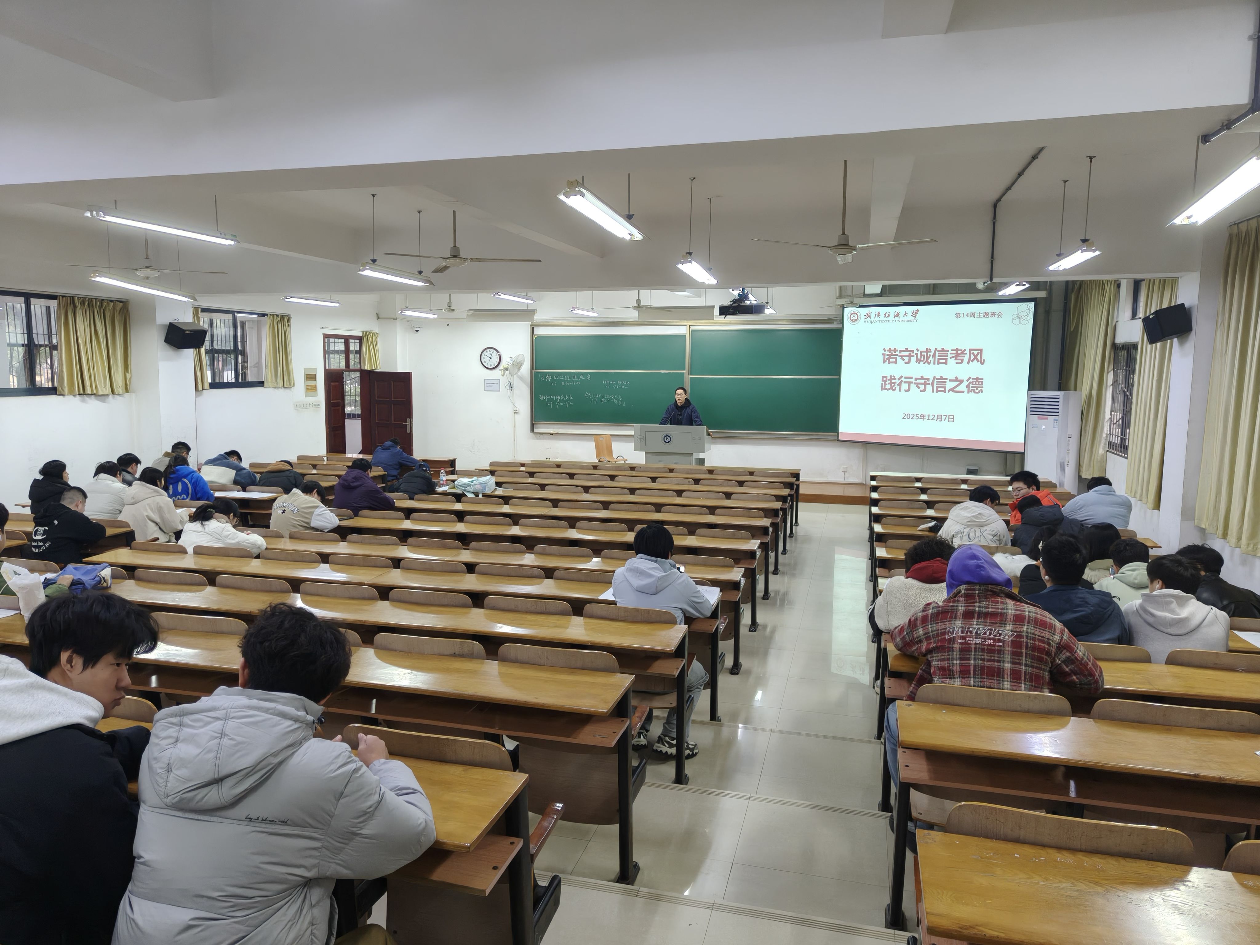 为强化学生诚信考试意识,营造公平公正的校园考试氛围,12月7日晚,武汉纺织大学分年级开展第14周晚点名活动暨”恪守诚信考风 践行守信之德“主题班会。本次活动以“恪守诚信考风 践行守信之德”为核心,通过理论学习、案例警示、备考指导等内容,推动诚信理念入脑入心。
