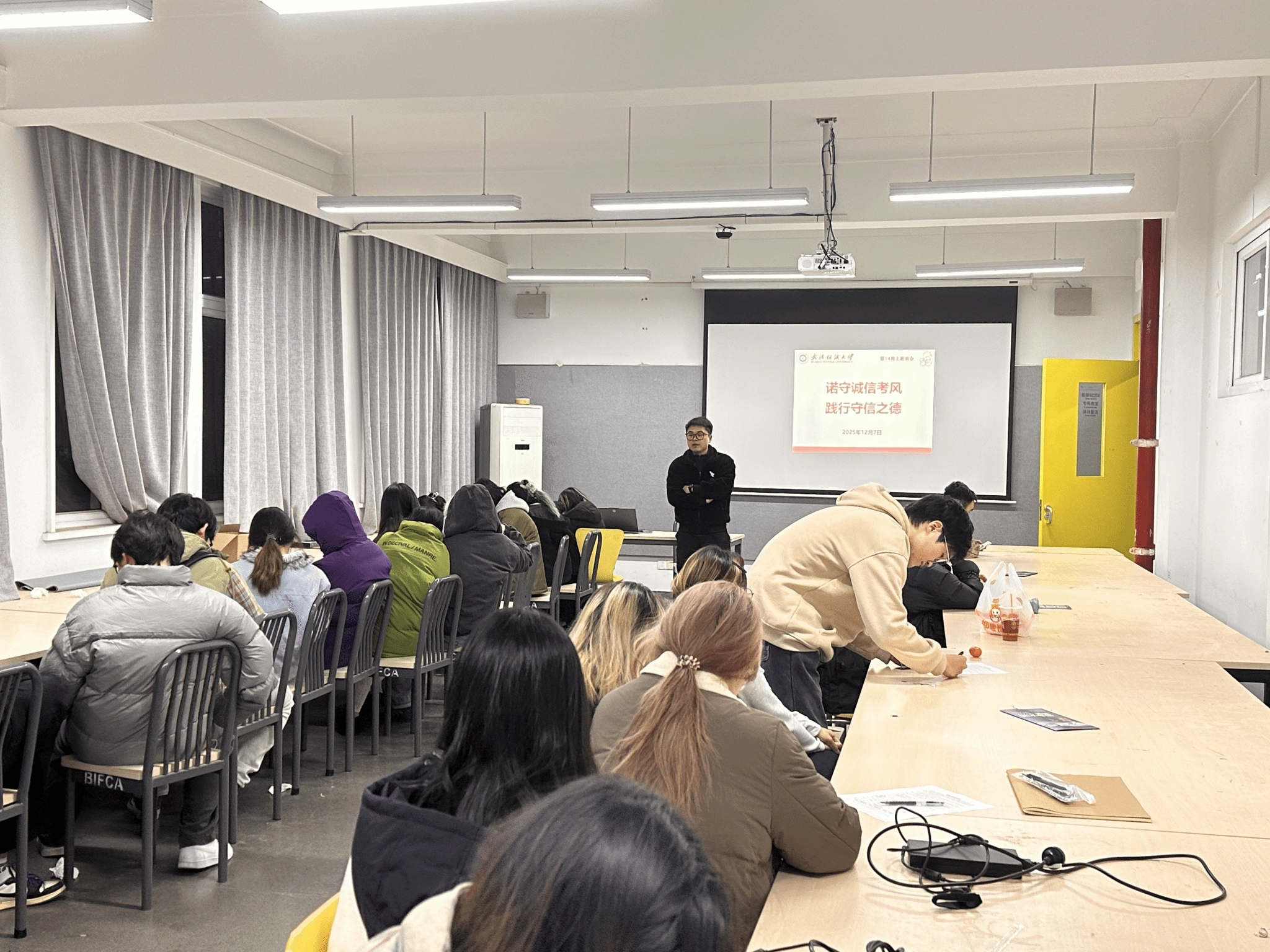 为强化学生诚信意识,营造公平公正的考试环境,12月7日,学院组织研究生及本科生各年级于崇礼楼集中开展“诺守诚信考风 践行守信之德”主题教育班会,引导学子以诚信姿态迎接期末考试,筑牢道德底线。