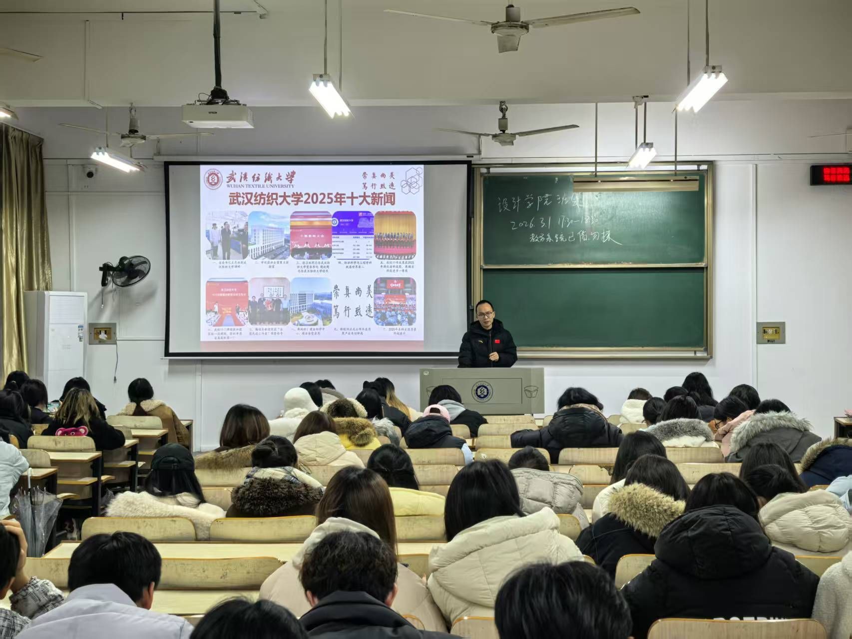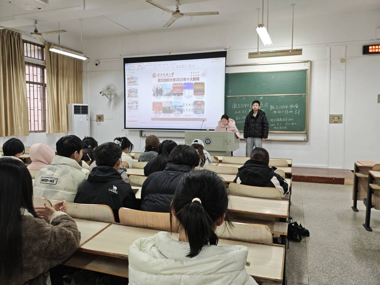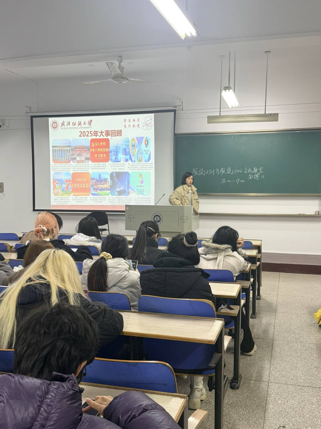 班会伊始,全体辅导员、班主任对所带的年级进行点名,核查学生报到情况,落实并上报未报到学生的名单及事由,班主任和辅导员对未到的学生进行逐一联系。随后辅导员老师带领同学们共同回顾2025年国家与学校发展成就。从“数”说中国2025的亮眼数据,到武汉纺织大学十大新闻的精彩瞬间,同学们深刻感受到国家发展的磅礴力量与学校建设的坚实步伐。同时,通过“守护青春,远离渗透”专题教育,明确了非法宗教活动的边界与危害,强化了校园安全意识,筑牢了思想防线。