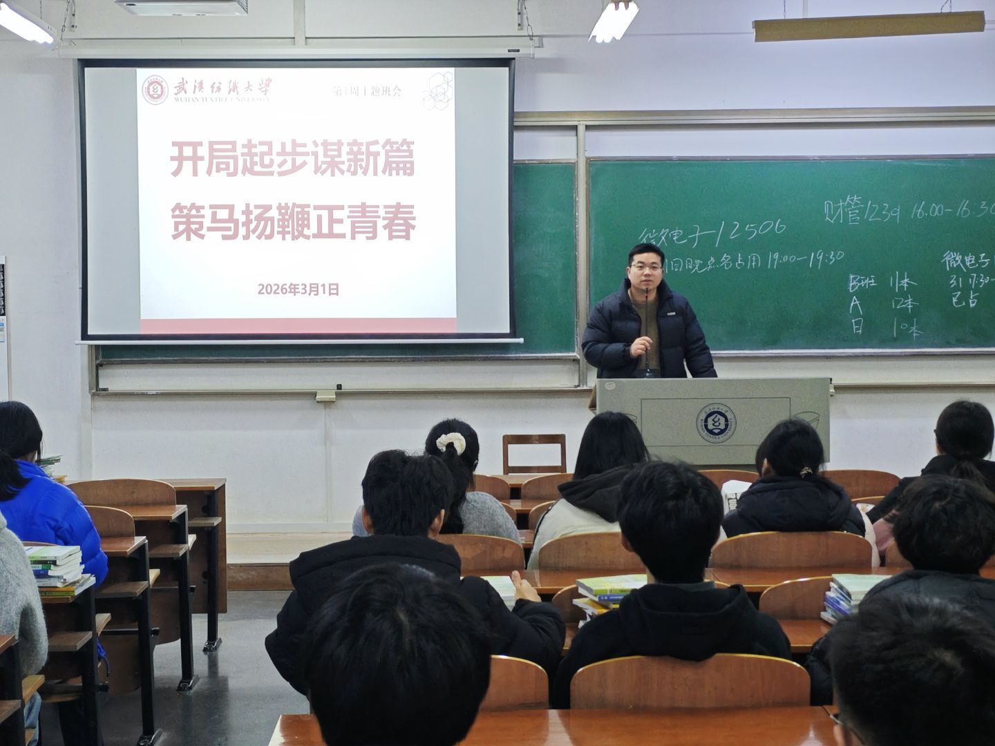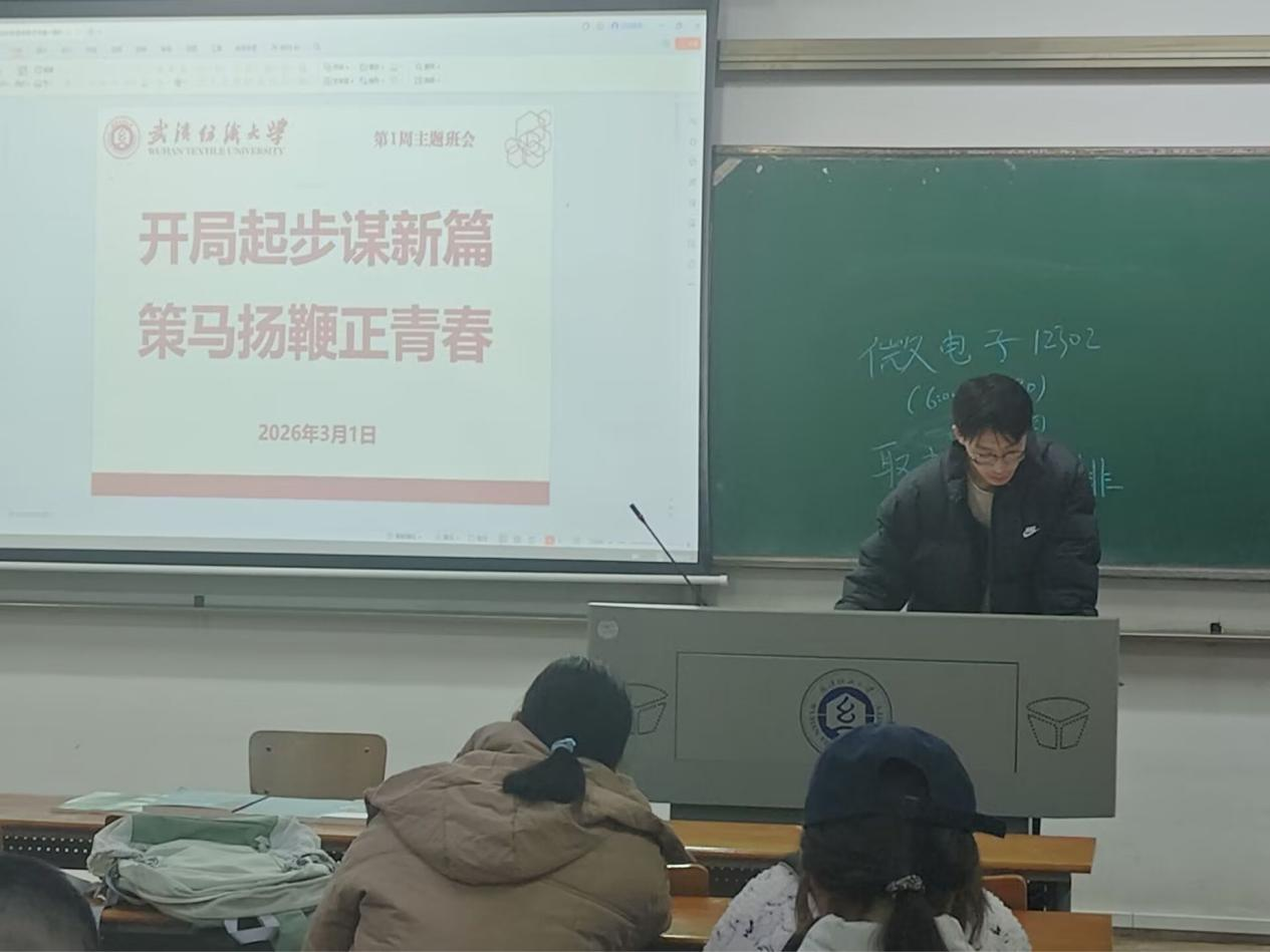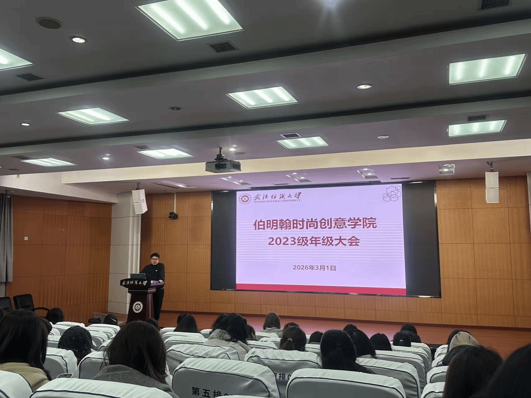 为进一步引导学生在新学期伊始明确奋斗目标、激发奋进动力,同时强化安全意识与纪律观念,伯明翰时尚创意学院于3月1日下午组织召开“开局起步谋新篇,策马扬鞭正青春”主题班会。班会围绕武汉纺织大学参与“双一流”建设的关键之年、新学期学业规划、校园活动参与及安全注意事项等内容展开。学院党委副书记李斗明、全体辅导员、各班班主任及学生共同参加。