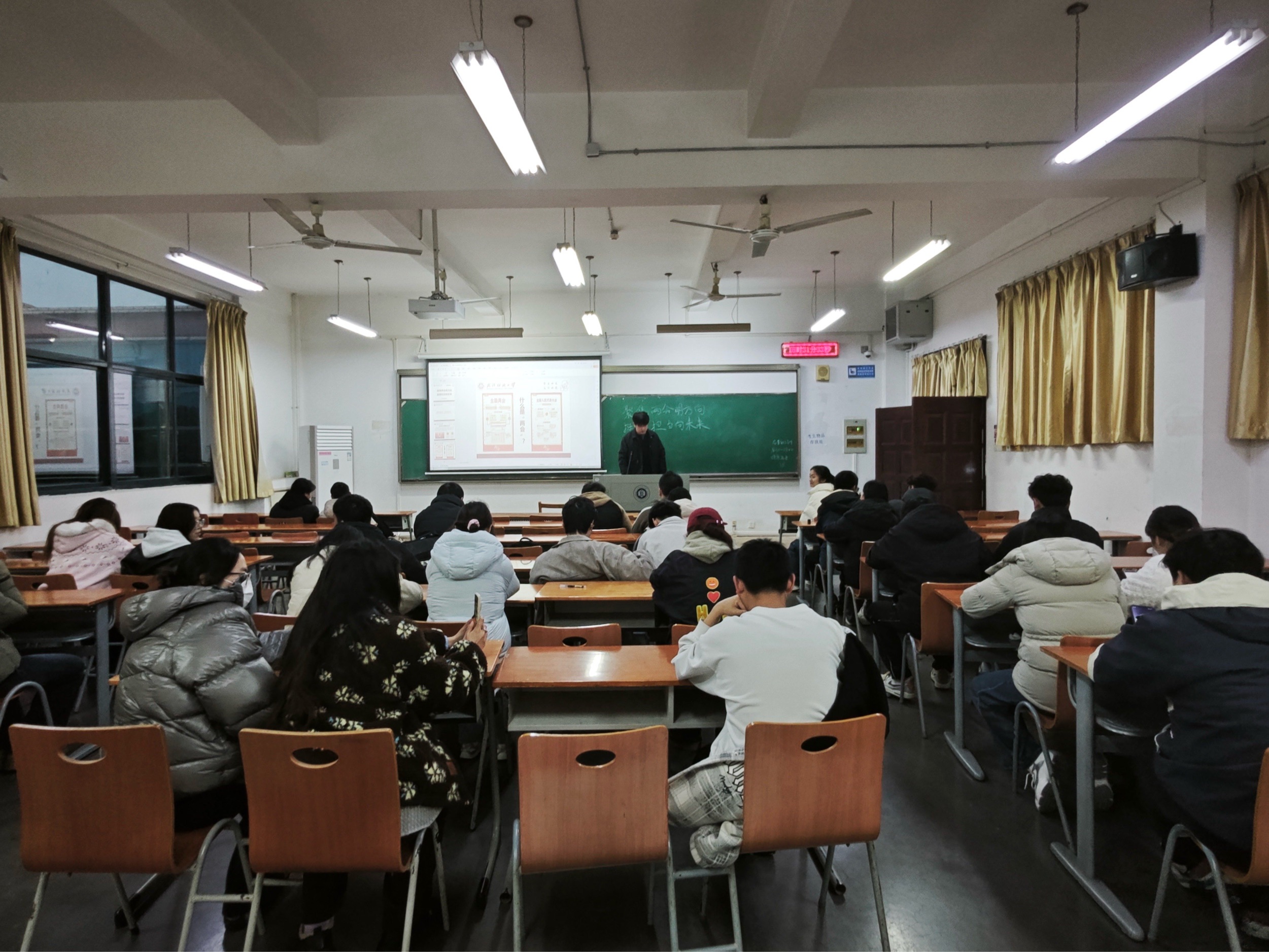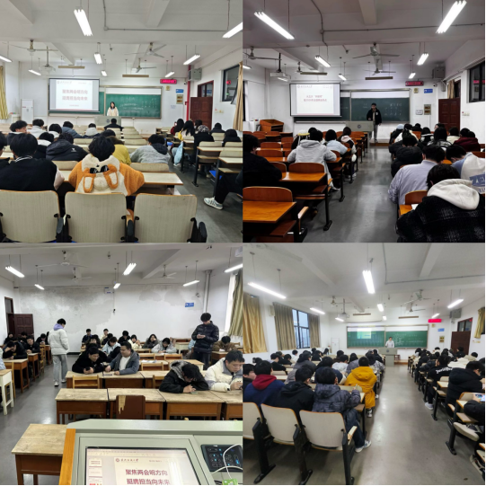 2024级各班以全国两会精神为核心,系统解读政府工作报告中关于青年发展、科技创新、教育强国等关键部署,结合校园实际案例与专业发展方向,引导学生深刻理解“国之大者”与个人成长的紧密联系。他强调“青春逢盛世,奋斗正当时”,要求全体学生从思想认识、学业规划、实践行动三个维度发力。一是深化理论学习:主动关注两会政策动向,将专业知识与国家战略需求结合,二是强化责任担当:在班级管理、志愿服务、学科竞赛中践行青年使命是,三是提升实践能力:通过课题组研究、科创比赛等载体,将两会精神转化为具体行动。共同营造“以学促行、以行践知”的校园氛围,助力青年学子在新时代浪潮中挺膺担当,书写无愧于时代的青春答卷。