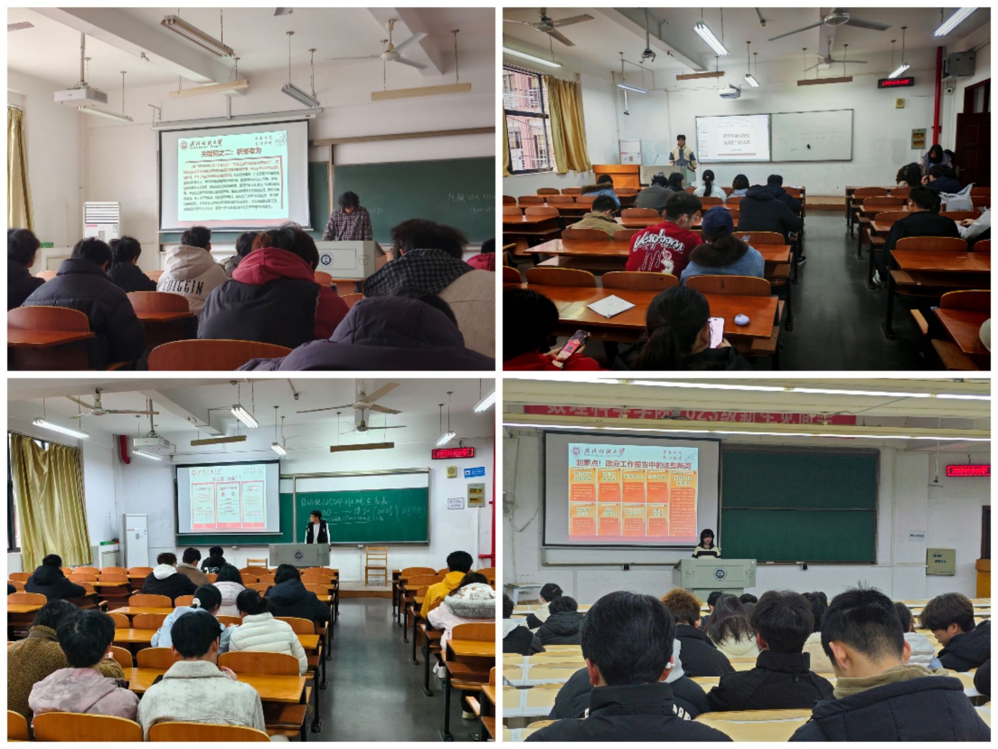 在讲解中,各班班长重点阐释了“智能经济”这一全新提法,强调人工智能等新技术正深刻改变经济形态,为青年学子在科技创新、产业升级等领域提供了前所未有的机遇。同时,他结合“投资于人”的关键词,解读了两会在教育、就业、医疗等民生领域的部署,鼓励同学们将个人发展融入国家发展大局,在服务社会中实现人生价值。