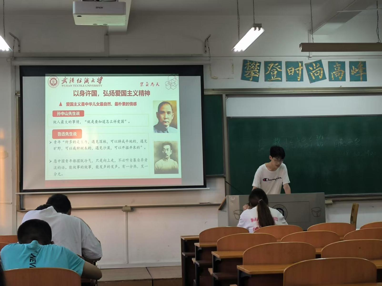 随后,辅导员以习近平总书记对青年的寄语,“青年兴则国家兴,青年强则国家强” ,深刻领会“五四精神”的时代内涵。从“中国梦是我们的,更是你们青年一代的”到“让青春之花绽放在祖国最需要的地方”,一句句饱含期许的话语,激励着同学们将个人成长融入国家发展大局,以青春之我,筑青春之中国。之后又围绕“五四精神:爱国主义的时代升华”,深入探讨“爱国、进步、民主、科学”精神在当代的价值。从校史中的爱国故事,到新时代青年科研报国、服务社会的实践,同学们深刻认识到,五四精神从未过时,而是在代代青年的奋斗中不断焕新,成为推动国家进步、社会发展的强大动力。之后又进行了“青春力量·感动纺大”2024年度十佳榜样人物的事迹分享,成为班会最动人的篇章。传媒学院研究生花帅,在艺术设计领域屡获大奖,用创意诠释青春价值;管理学院本科生罗渝潇,创办电商平台助力农户增收,以创业实干践行青年担当;经济学院闫育杰、外国语学院姜宇、技术研究院欧阳胜男等同学,也分别在学术科研、社会实践、创新创业中展现青春风采,他们的故事让“五四精神”具象化,为同学们树立了可触可及的榜样。辅导员提出同学们要以科研创新为笔,书写报国篇章;以志愿服务为桥,传递青春温度。新时代青年应将爱国情、强国志,转化为具体行动,在实现民族复兴的赛道上奋力奔跑。