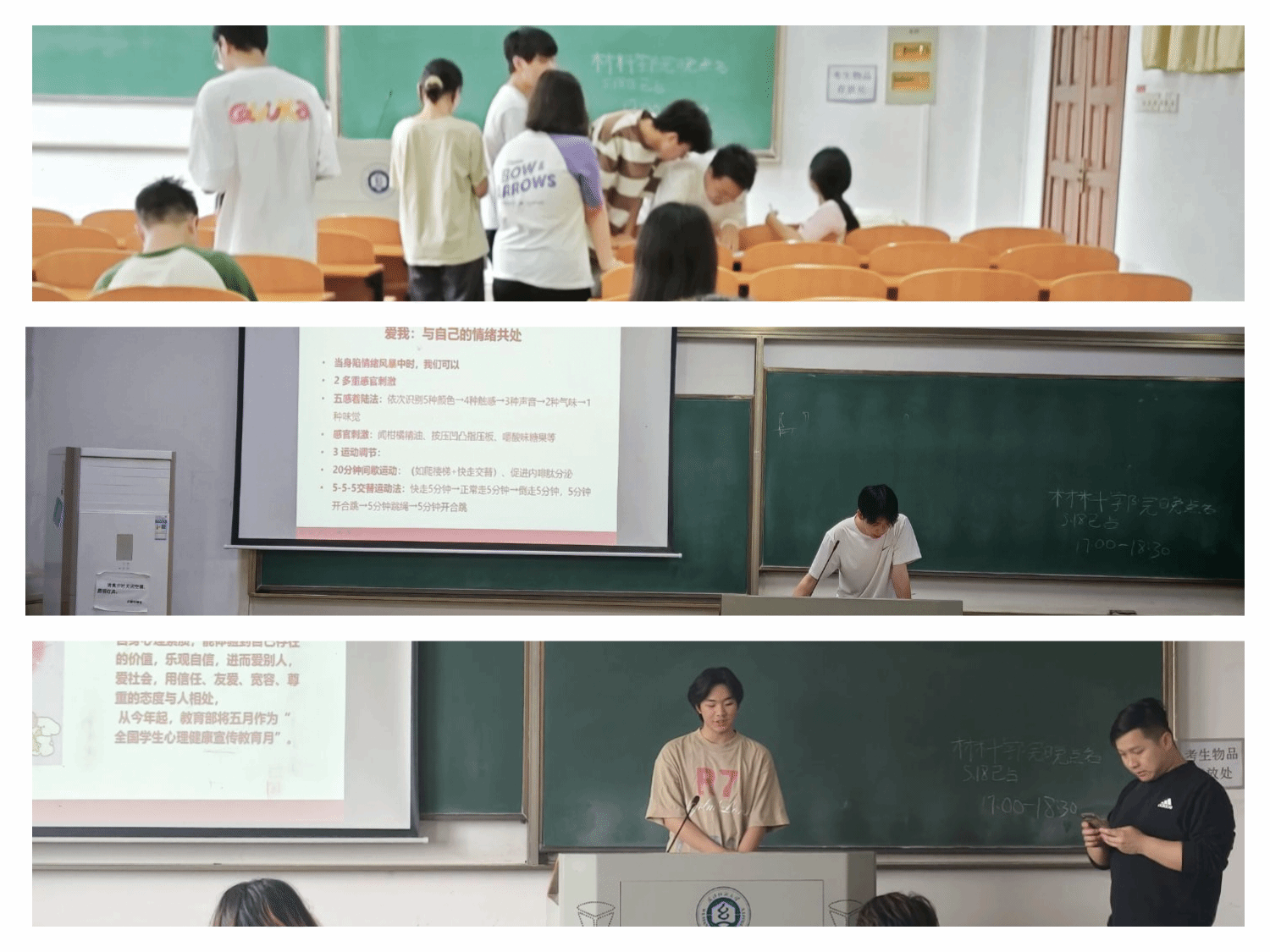 五月作为全国学生心理健康宣传教育月,临近“5・25”心理健康日,各班积极开展“心光绽放 青春同行”主题班会。班主任通过组织观看心理健康科普视频、互动游戏、压力释放分享会等形式,引导学生关爱自我、了解自我、接纳自我,以积极的心态面对学业与生活挑战,并鼓励有需要的同学主动寻求学院心理咨询帮助,关注自身心理健康和心灵成长,营造积极向上的班级氛围。