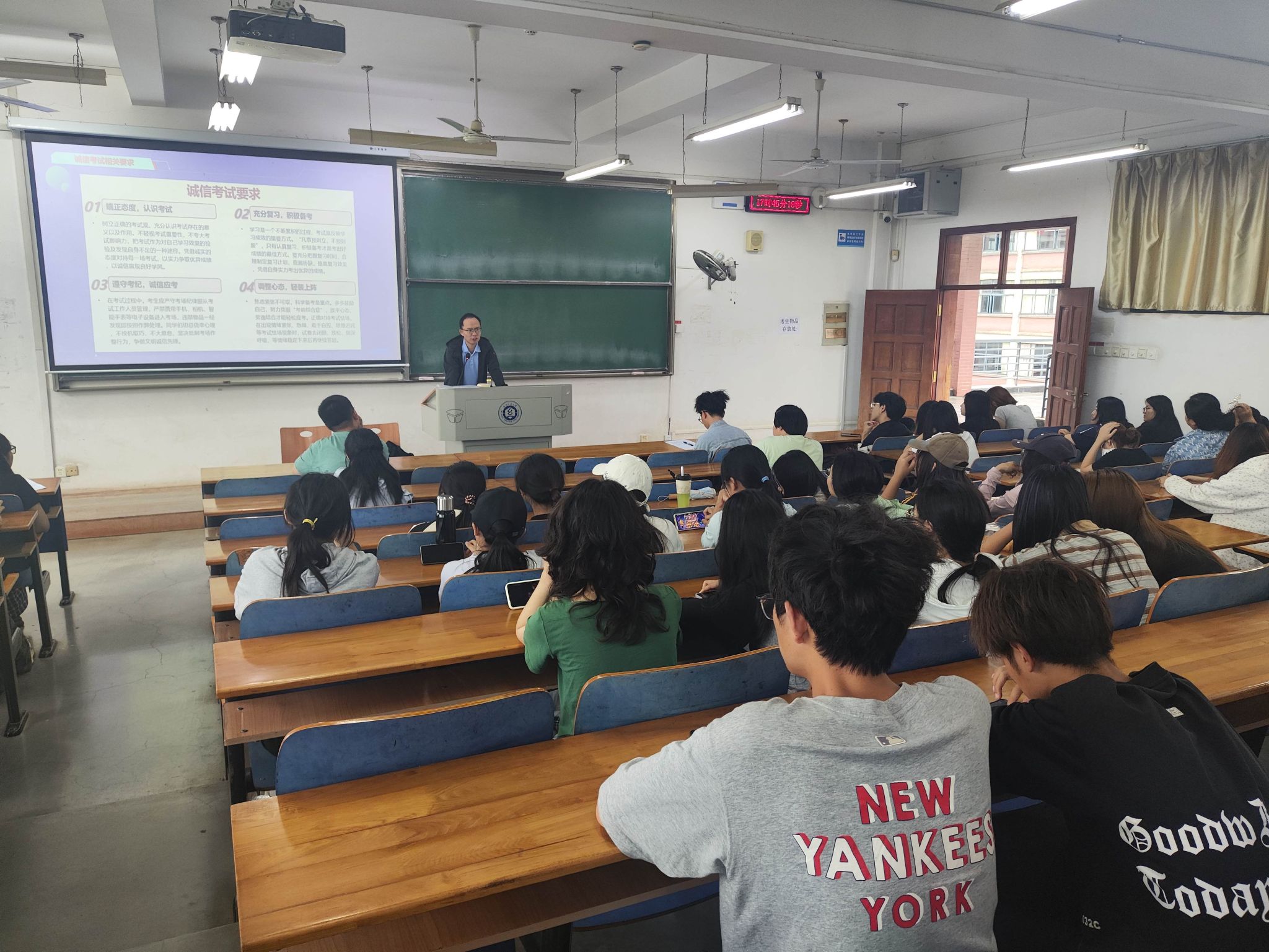 期末考试临近,考试诚信教育成为本次晚点名的重要内容。老师们向同学们强调诚信的重要性,强调诚信是公民的第二个“身份证”,考试是严格的知识水平鉴定方法,诚信考试是责任感和道德品格的体现。