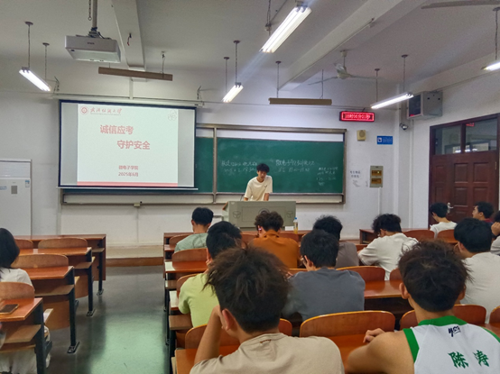 随后, “诚信应考 守护安全” 主题着重强调诚信考试的重要性,各班团支书向同学们阐释考试规章制度,剖析考试作弊的严重后果,让同学们深刻认识到诚信考试不仅关乎个人学业成绩,更关系到个人的品德修养和未来发展。引导大家树立正确的考试观,以诚信的态度对待学业检验。同时,从校园安全角度出发,提醒同学们在考试期间注意人身财产安全,保障考试顺利进行。