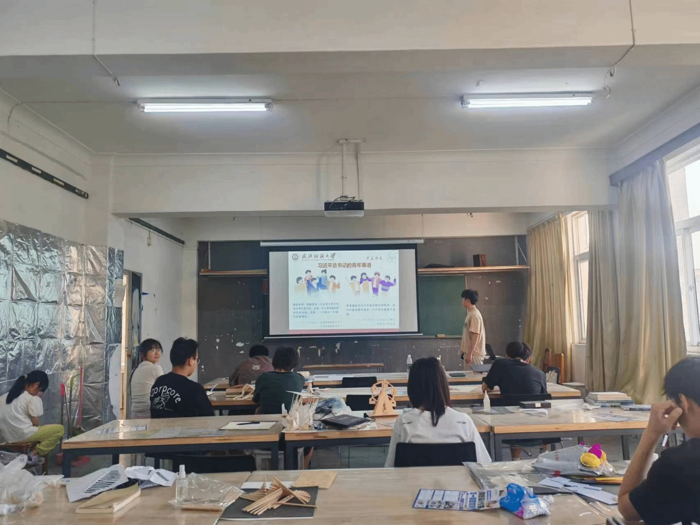 班会伊始,各班团支书向我们讲述了榜样力量的主题,向同学们介绍优秀学生代表的学习经验、科研心得与成长故事。从如何制定合理的学习计划,到怎样高效掌握专业课程知识,以朋辈间的交流方式,为同学们提供了可借鉴的成长路径与学习方法,激发大家的学习热情与进取精神,构建起互帮互助、携手共进的良好氛围。