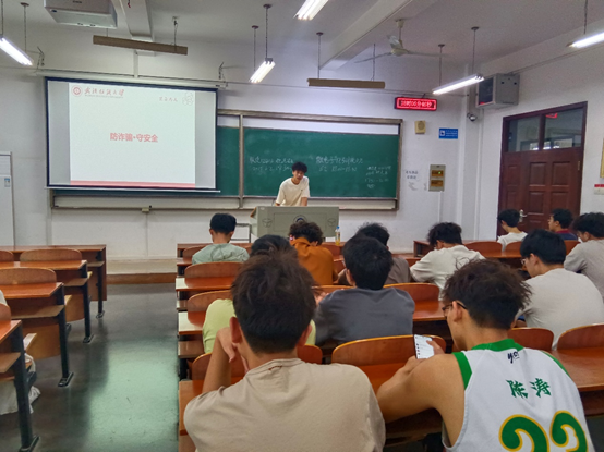 另一方面,针对近期的假期安全问题,朱一雷老师详细讲解了“谨防网购诈骗,共创校园安全”的具体措施,通过剖析常见诈骗手段,如虚假客服,钓鱼网站等,提醒同学们增强防范意识,做到“不轻信,不转账,不泄露”,维护个人安全,远离诈骗陷阱。