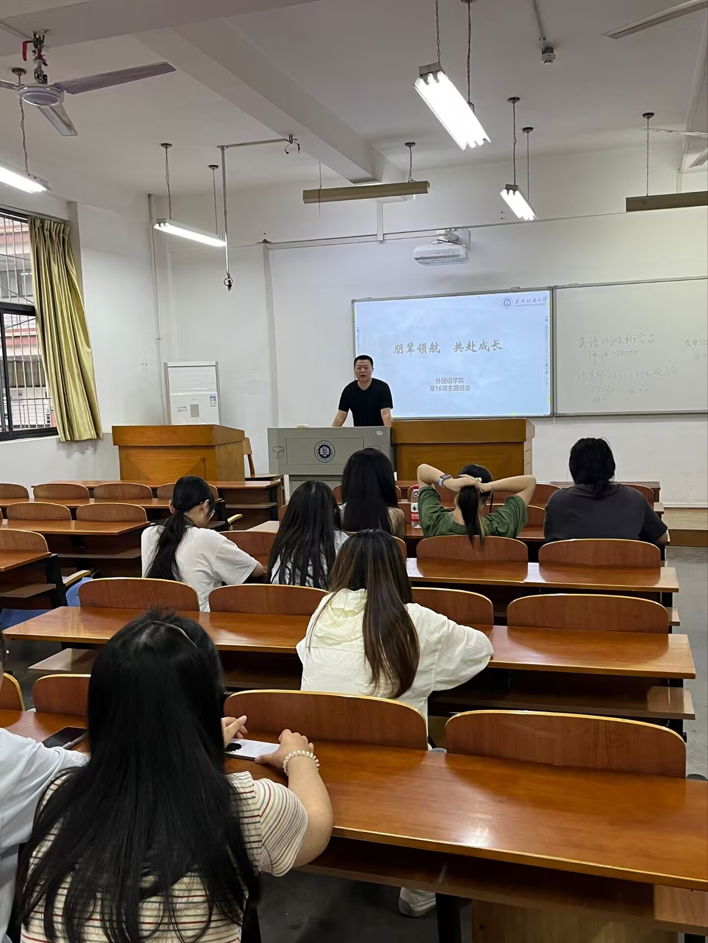 班会开始前,各年级辅导员清点人数,确认学生端午假期的返校情况,并上报学院。班会上,各班班长向班级同学分享了考研和就业学长的经历,阐述了朋辈领航的重要意义,强调朋辈之间相互学习、相互鼓励在大学生成长过程中的关键作用。